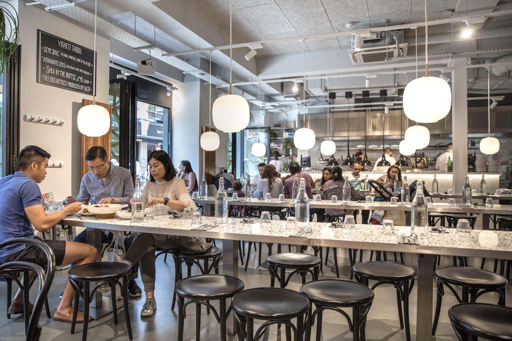 The restaurant prides itself on its fresh pasta, crafted with the finest 00 flour (just like Nonna makes it) and its seasonal specials. As you roll another serving of spaghetti onto your fork, you can rest easy in the knowledge that it was made by pastai standing just behind you – a welcome change from the kale and avo bento box that awaits you in the office fridge. And you can even have it gluten-free (if that’s your bag). Pasta has the rare allure of being substantial and still bringing across a lightness in the flavour it carries, and this restaurant aims to make the most of this with a variety of summery, seafood and savoury sauces.