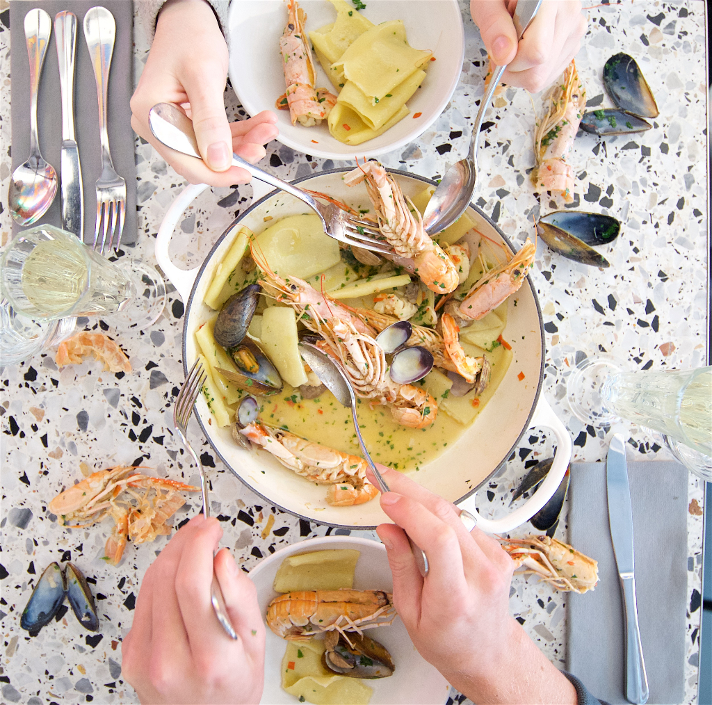 If Soho isn’t your usual stomping ground, or you fancy a more intimate setting with faces new or old, the restaurant’s pastaio-in-chief Stevie Parle and chef Alessio Mecozzi showed us how to make this luxurious seafood pasta, made to be shared, so you can try it for yourself at home.