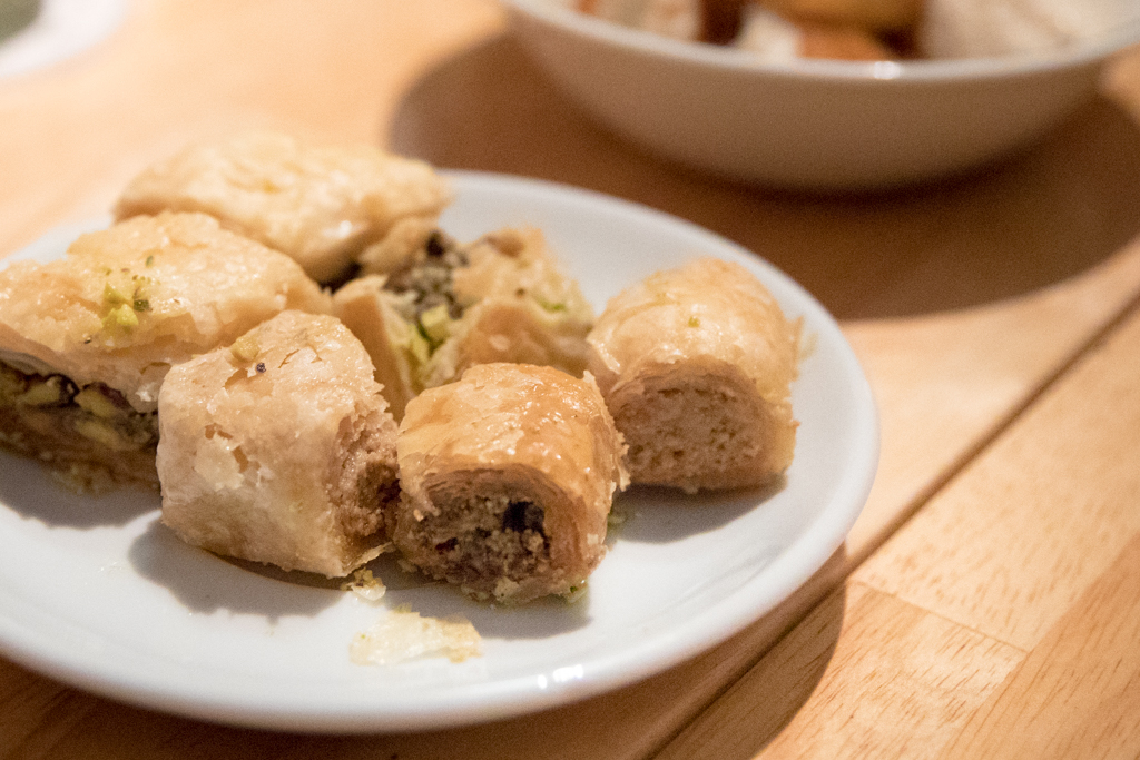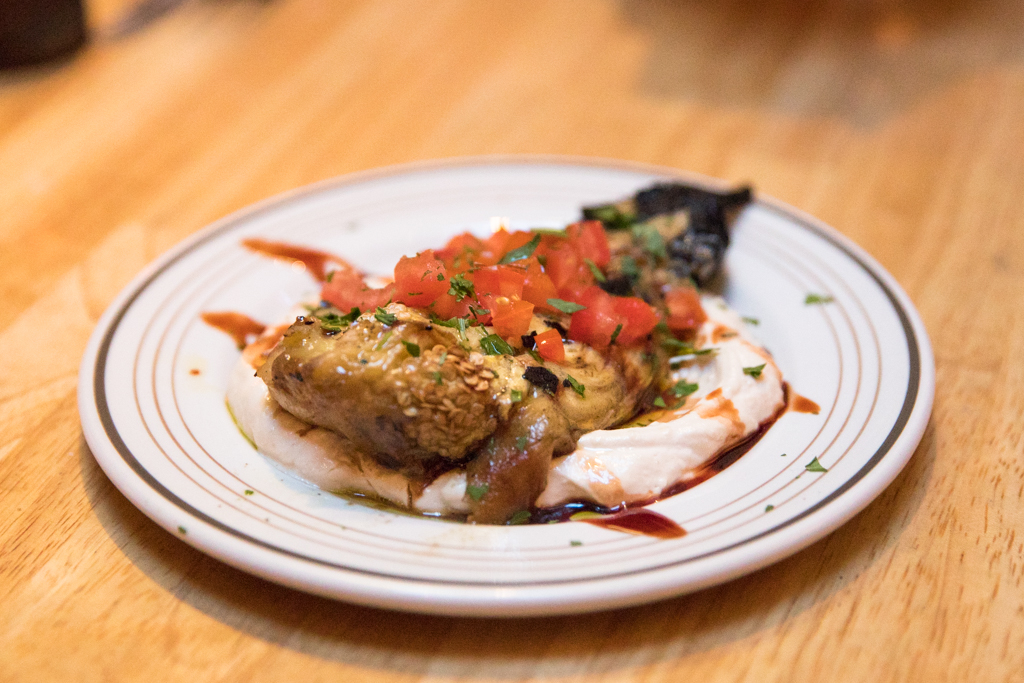 For mains, we opt for charred prawn kebabs. Coated in a spicy marinade, the sweetness of the delicate crustacean is complemented with a punchy harissa-topped mayonnaise which adds a hum of heat to the plate. We also try a dish of burnt aubergine, the delicate flavour of the soft flesh livened with hints of bitterness from the charred skin of the aubergine. Served atop a tahini and yoghurt sauce and tomato concasse, there is a sweetness from a date syrup which is a nice variation from the expected pomegranate molasses that often finds itself in Middle Eastern dishes.