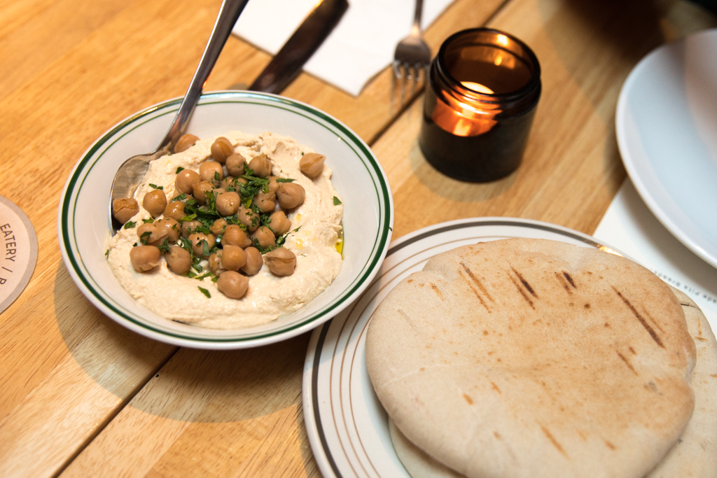 Sabanech, Labneh and Pine Nuts is garlicky and tart, with a tangy yoghurt topped with wilted spinach and toasted pine nuts, the latter of which add a lovely buttery feel to the dish – and some welcome bite. And of course, a mezze-style meal wouldn’t be complete without hummus, which in this instance is served topped with chickpeas and a lemony dressing. It’s heavy on the tahini and has a smoother, more authentic finish than the usual offering in many establishments.