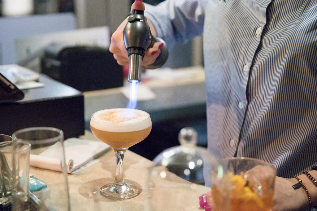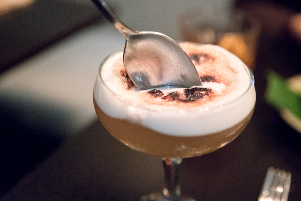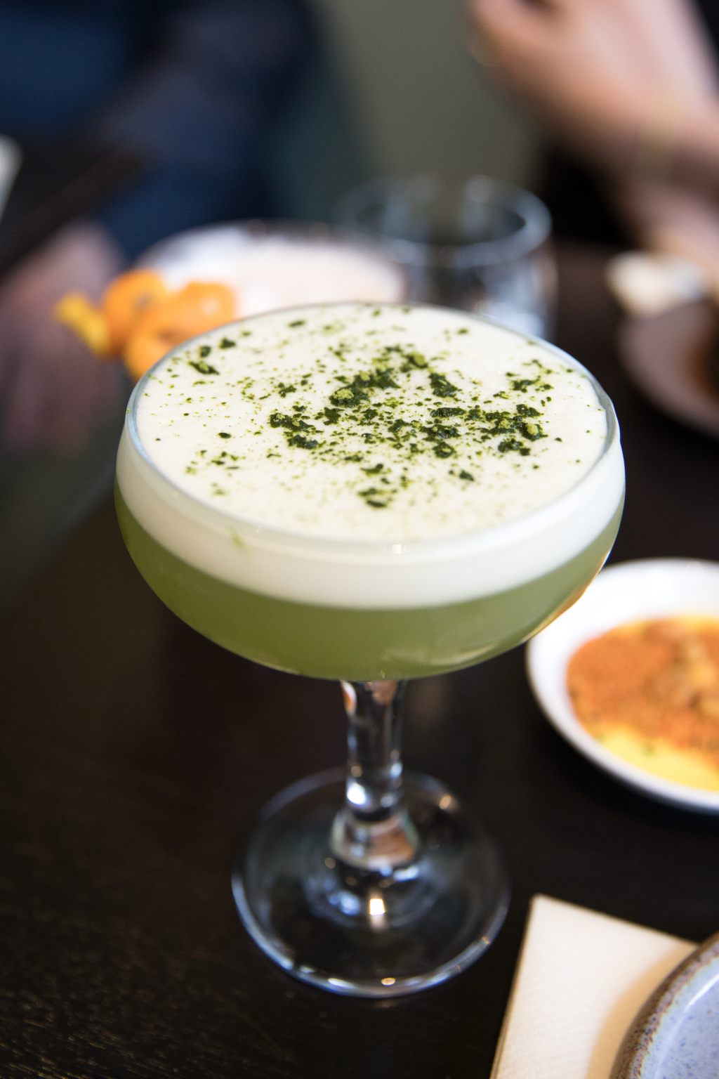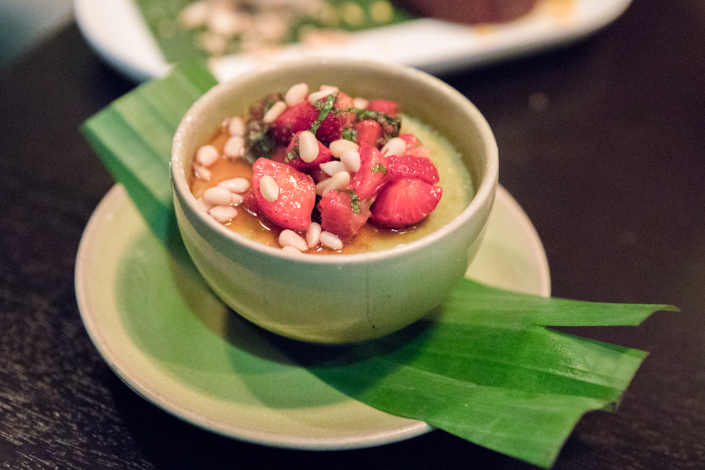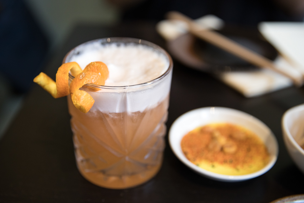 We started with a couple of cocktails – the Smokey Old Fashioned made with Japanese whisky (Hibiki) which made quite the entrance arriving at the table in a bell jar infused with smoked sugar. This is a punchy and robust cocktail that’s all about letting the whisky speak for itself. We also had the Igho Dragon which was made with Japanese sake, matcha, apricot syrup and lemon – perfectly sweet with a hint of sour.