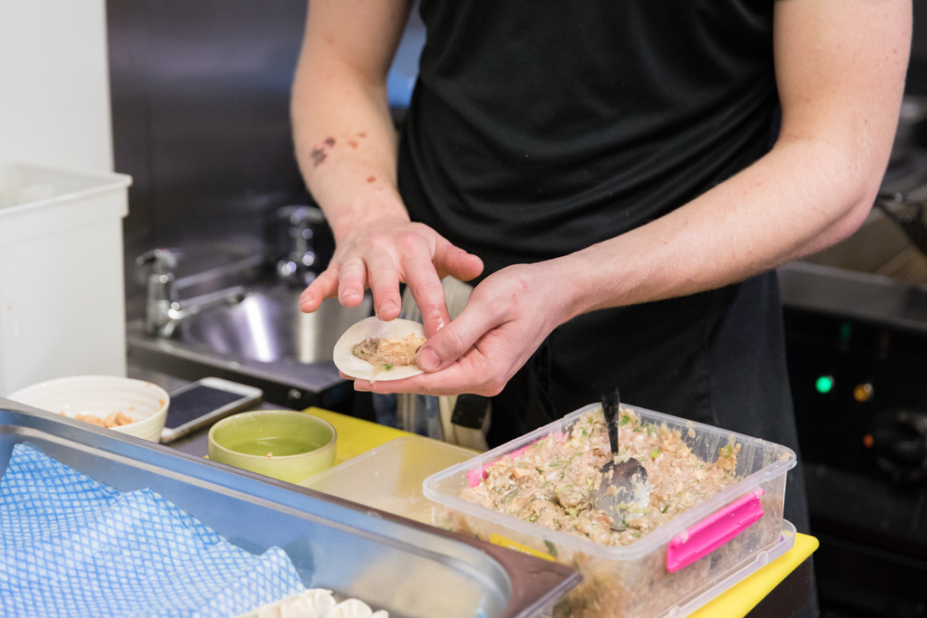 Then it was onto the much-anticipated gyozas. We ordered chicken and cheese and they arrived in a pretty formation. They were perfectly browned on the outside and filled with minced chicken and Bourgogne cheese which is strong and salty in flavour, giving the gyozas a really rich and indulgent quality. Although slightly heavier than your typical dumpling, this was a winning combination for me.