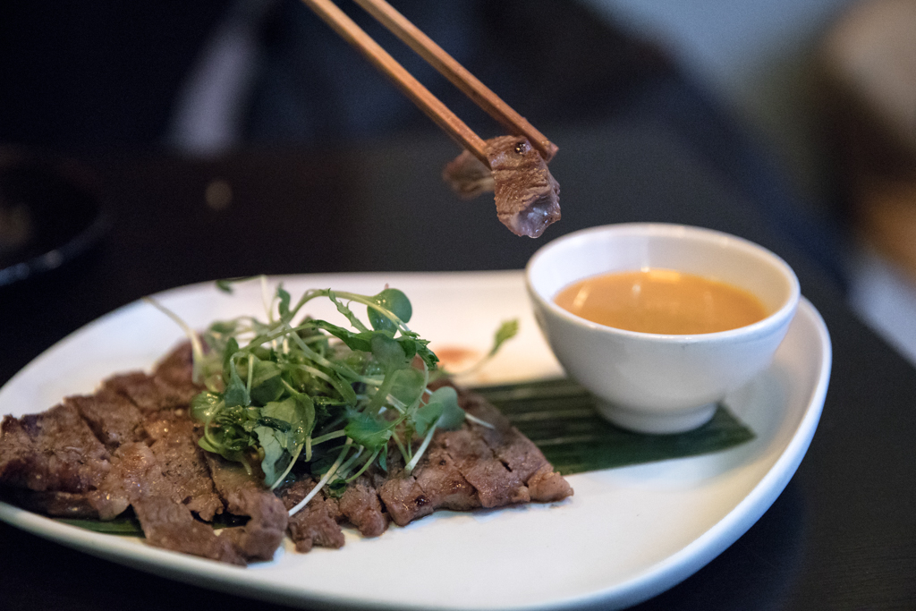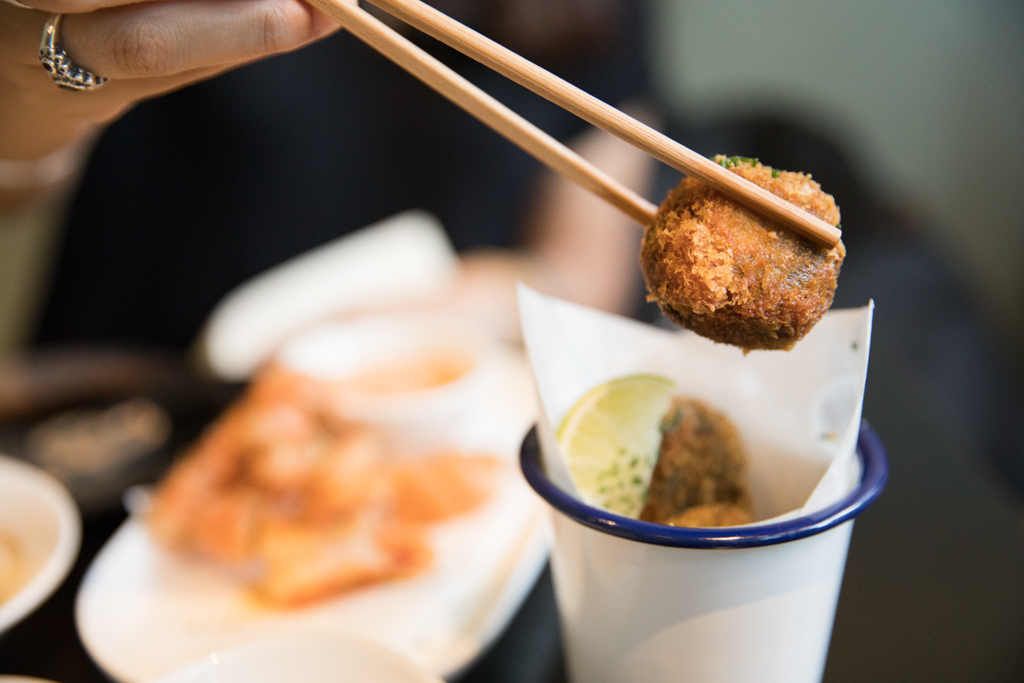 For the food, we started with a selection of small plates to share. The Crunchy Prawns were deep-fried, with shells intact, and served with a spicy mayonnaise. Packed full of flavour, these were incredibly moreish – with the shells giving an added crunch – and finished off with just the right amount of seasoning.