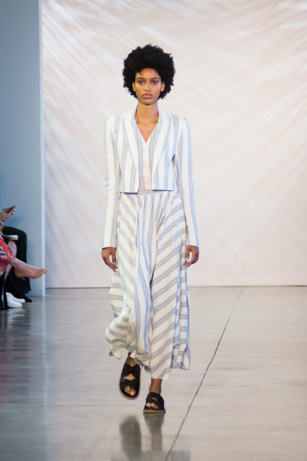 The natural fibres in their clothing created movement and gave many pieces the appearance of being lighter than air as they wafted effortlessly down the runway trailing behind the models. This was especially effective in some of the striped garments.