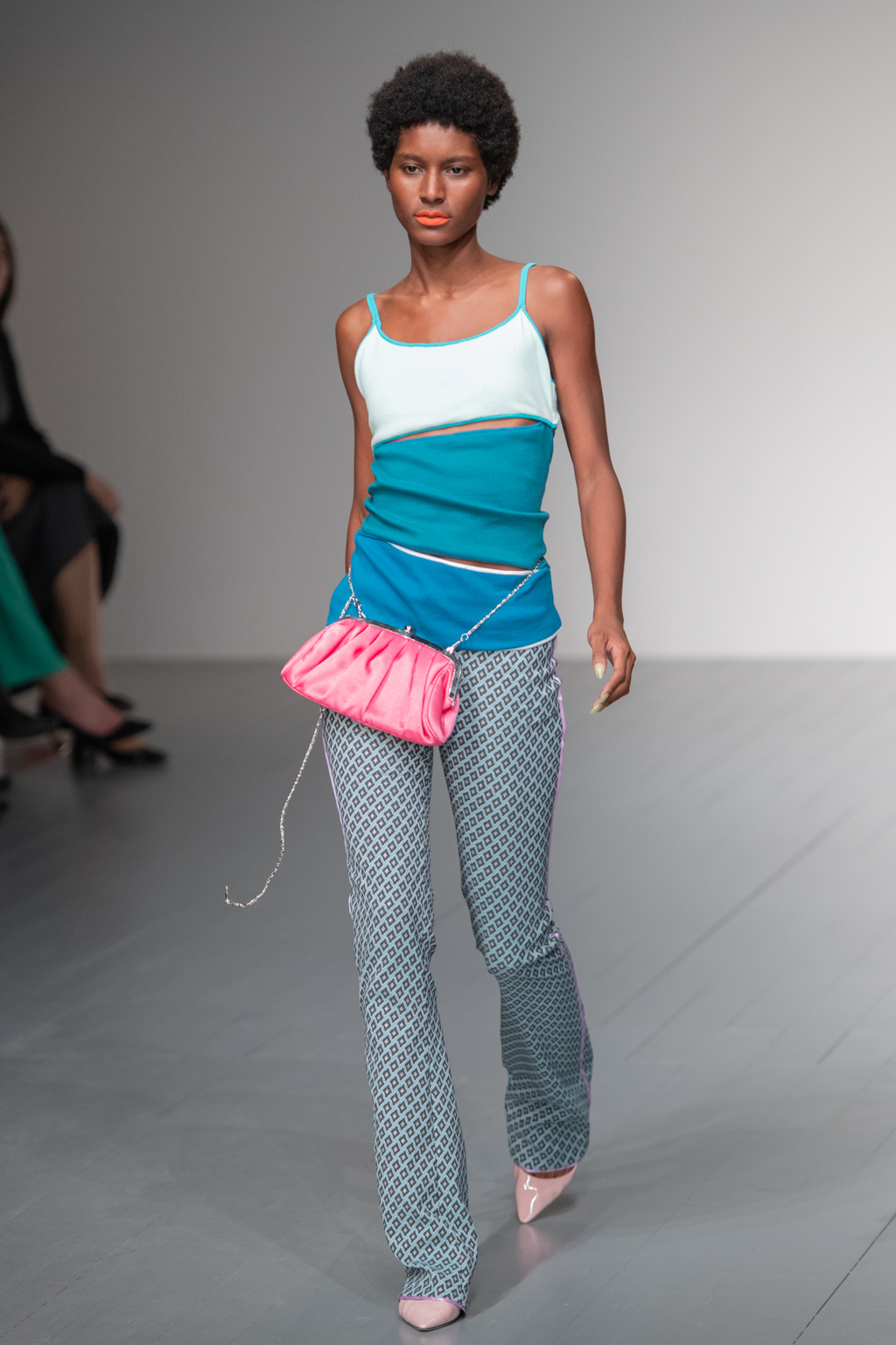 Jakubowski’s collection perfectly balanced brash, carefree clubwear with sophisticated, slinky style, offering a blast from the past with a distinctly contemporary appeal.