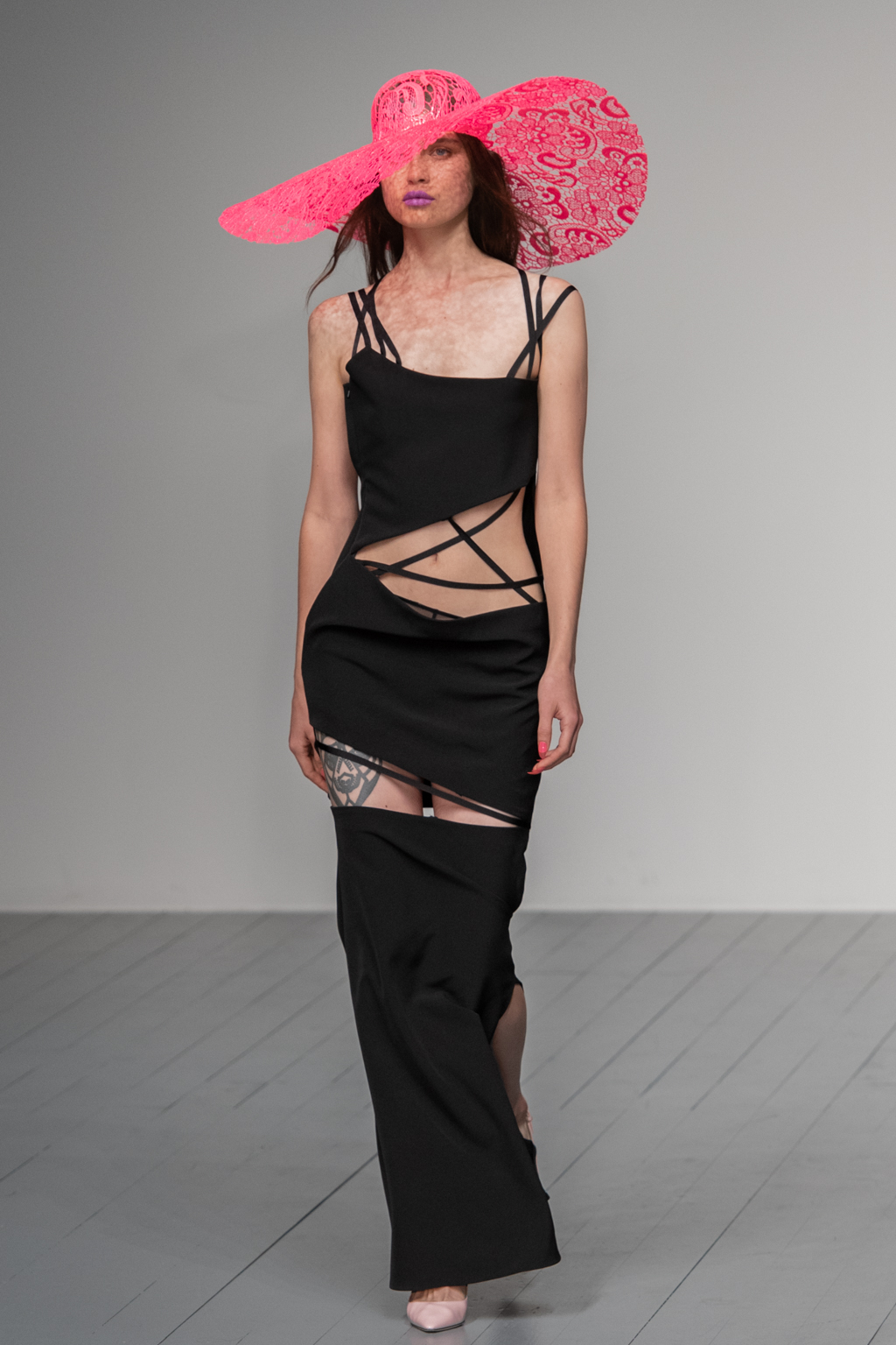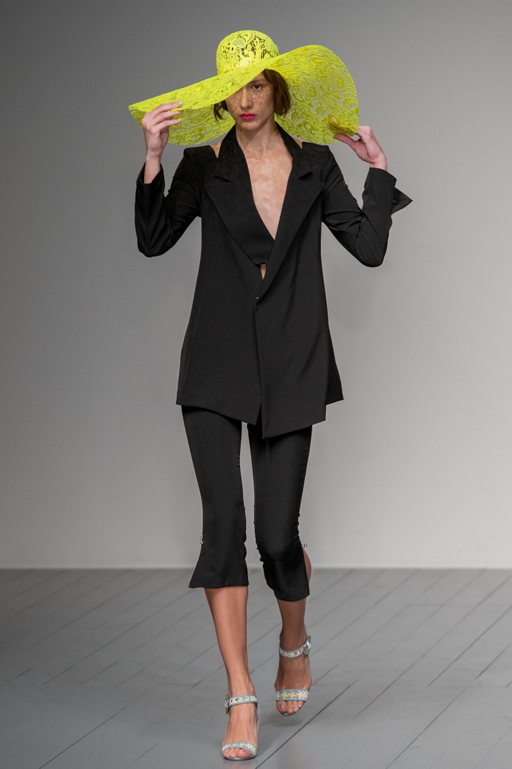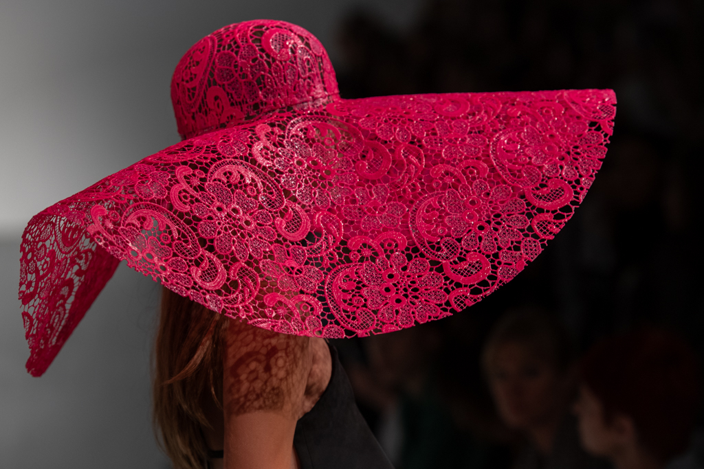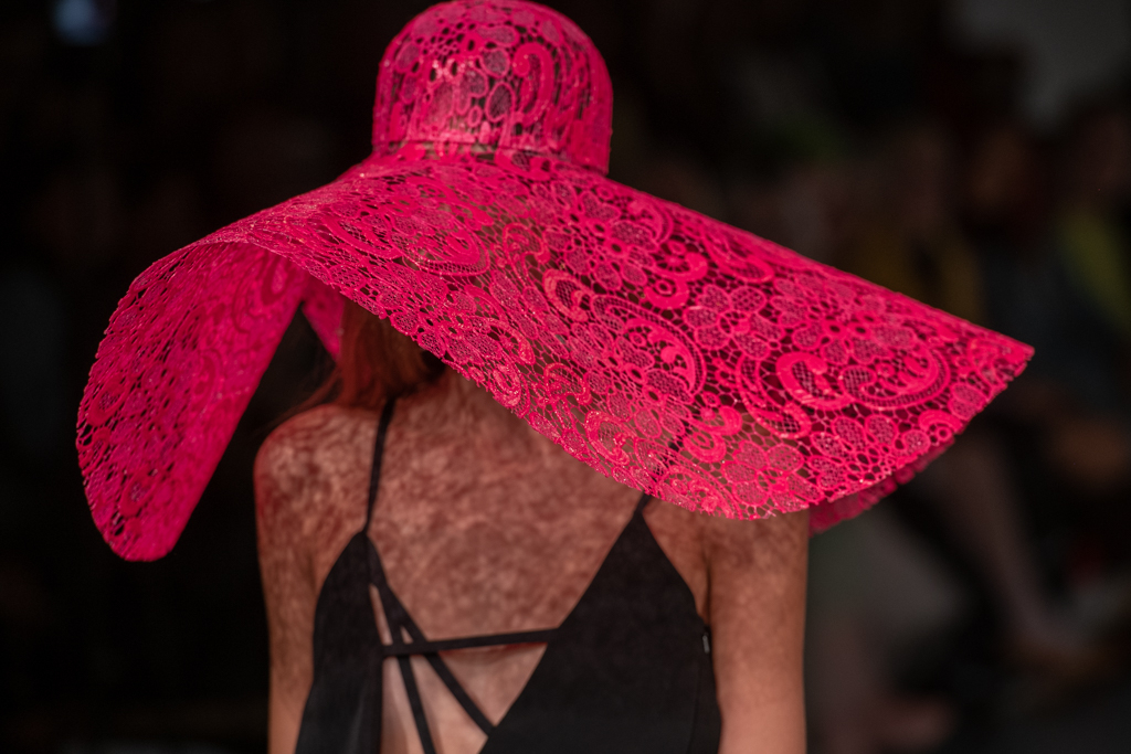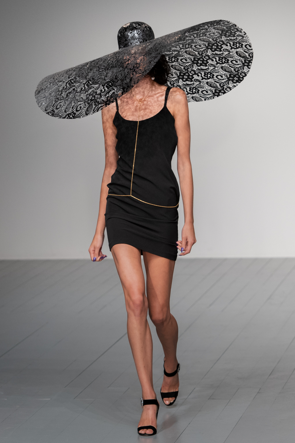 The collection as a whole resonated with feminine power. In particular, a series of sleek and strappy black dresses offered classy and confident evening wear, cut with elegant low backs and complimented by luxuriously wide-brimmed hats.