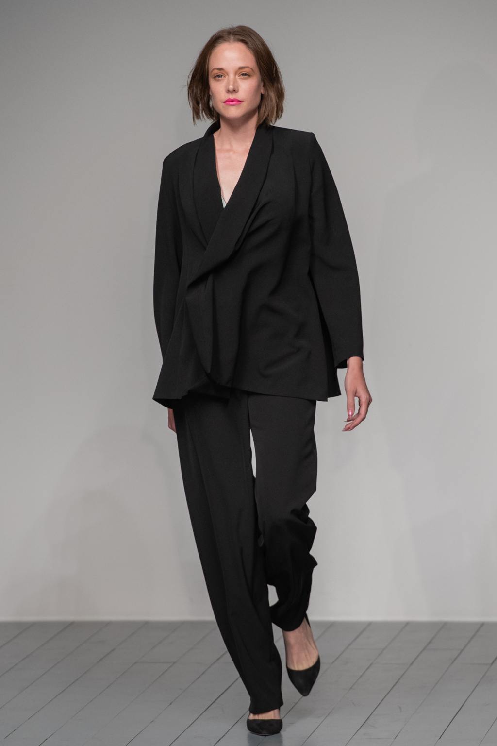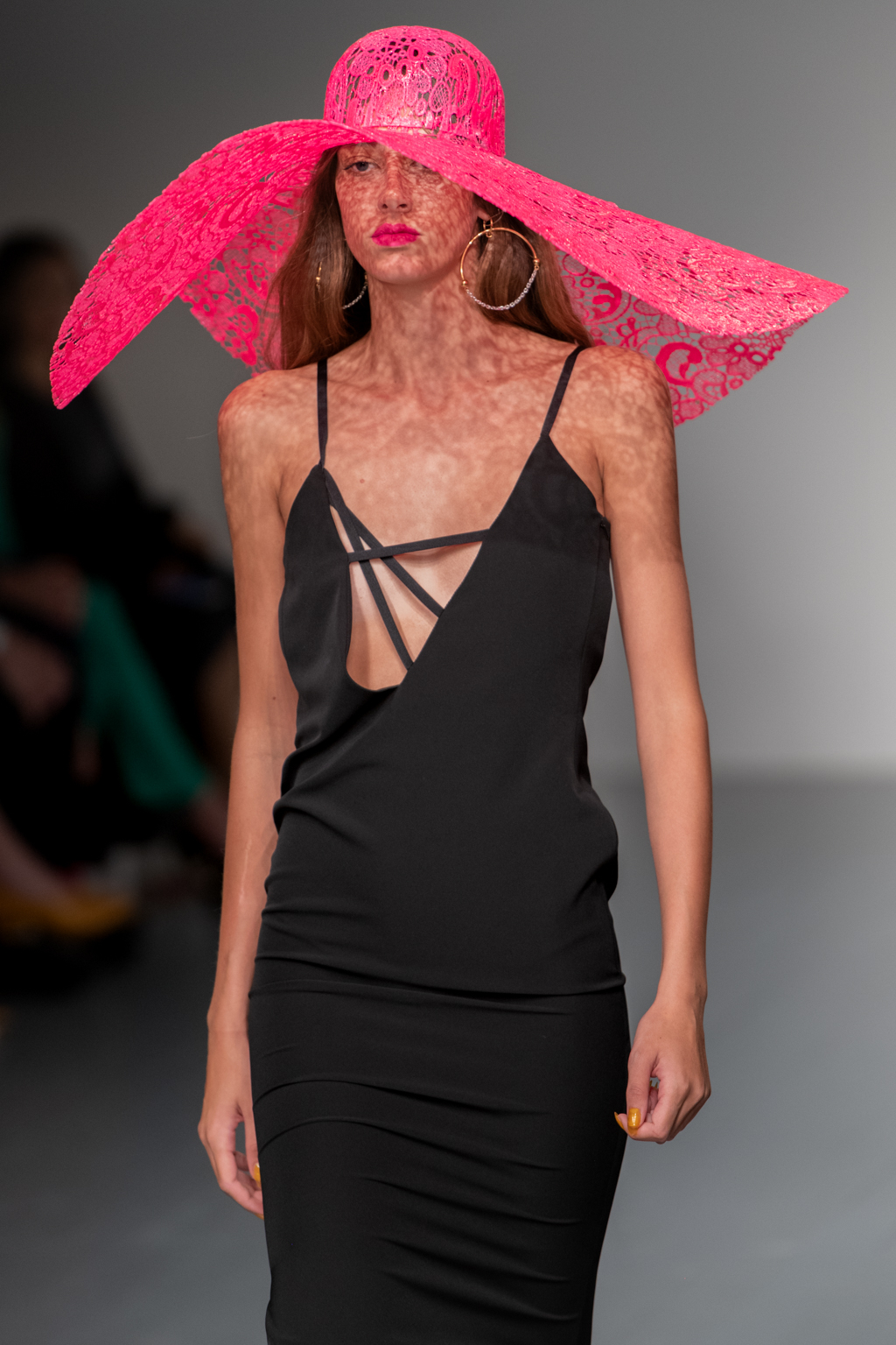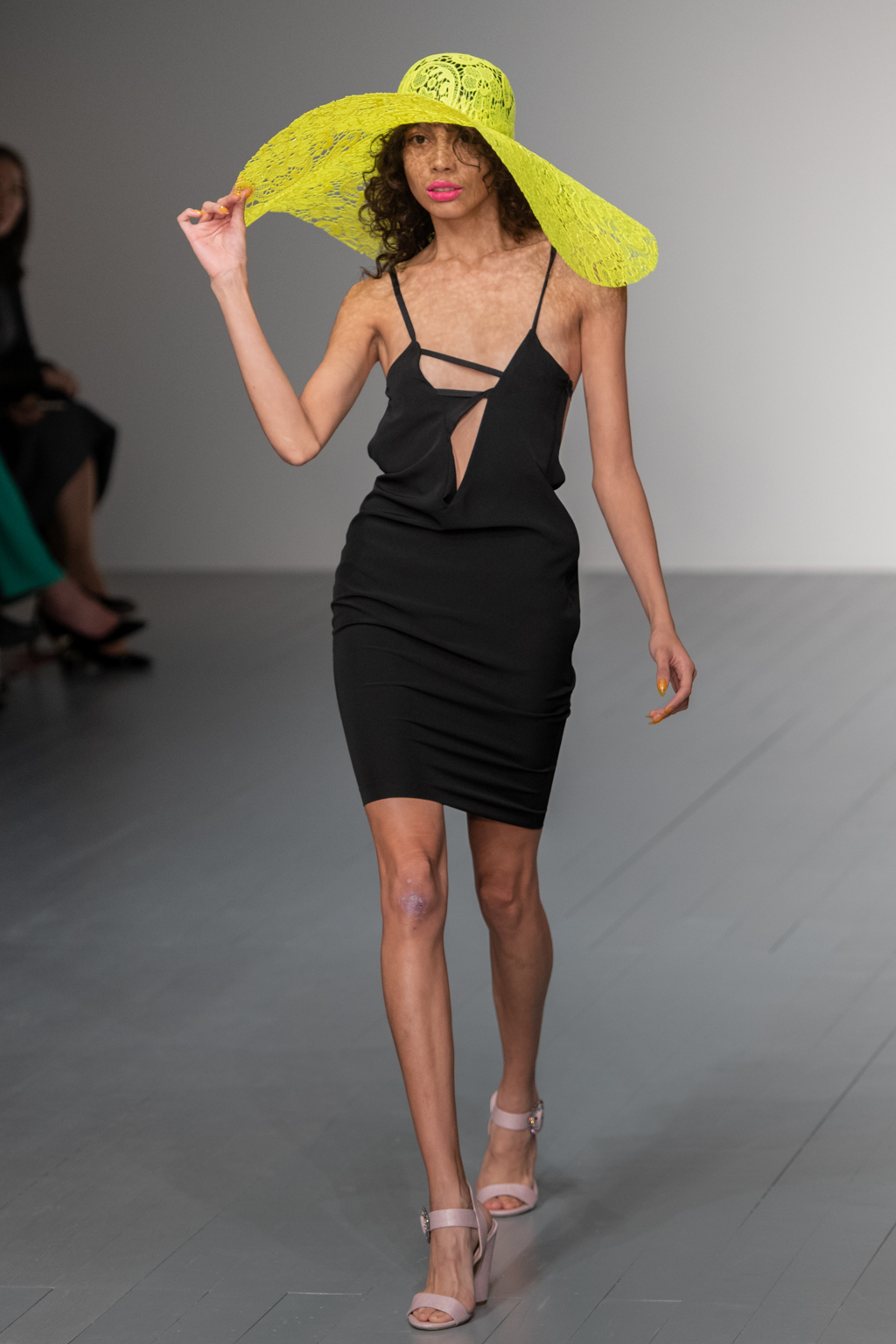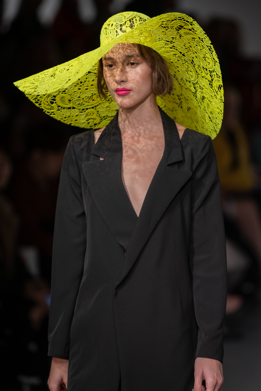 The collection as a whole resonated with feminine power. In particular, a series of sleek and strappy black dresses offered classy and confident evening wear, cut with elegant low backs and complimented by luxuriously wide-brimmed hats.