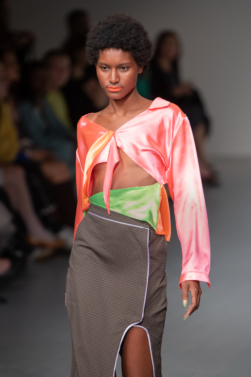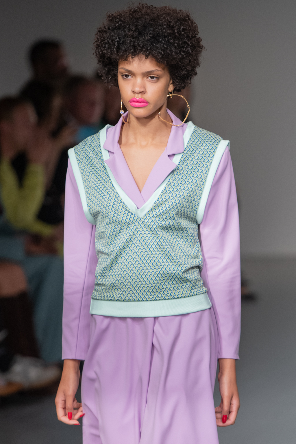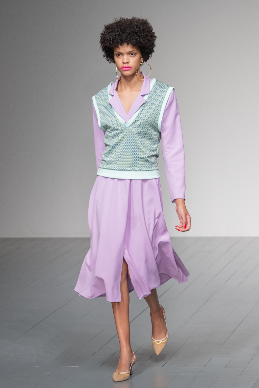 Marta Jakubowski’s new spring/summer 2019 collection, showcased at the BFC Showspace, was bursting with the mischievous charm of teenage rebellion. Based on memories of the designer’s adolescence, the nostalgic garments were brought to life by her playful aesthetic.