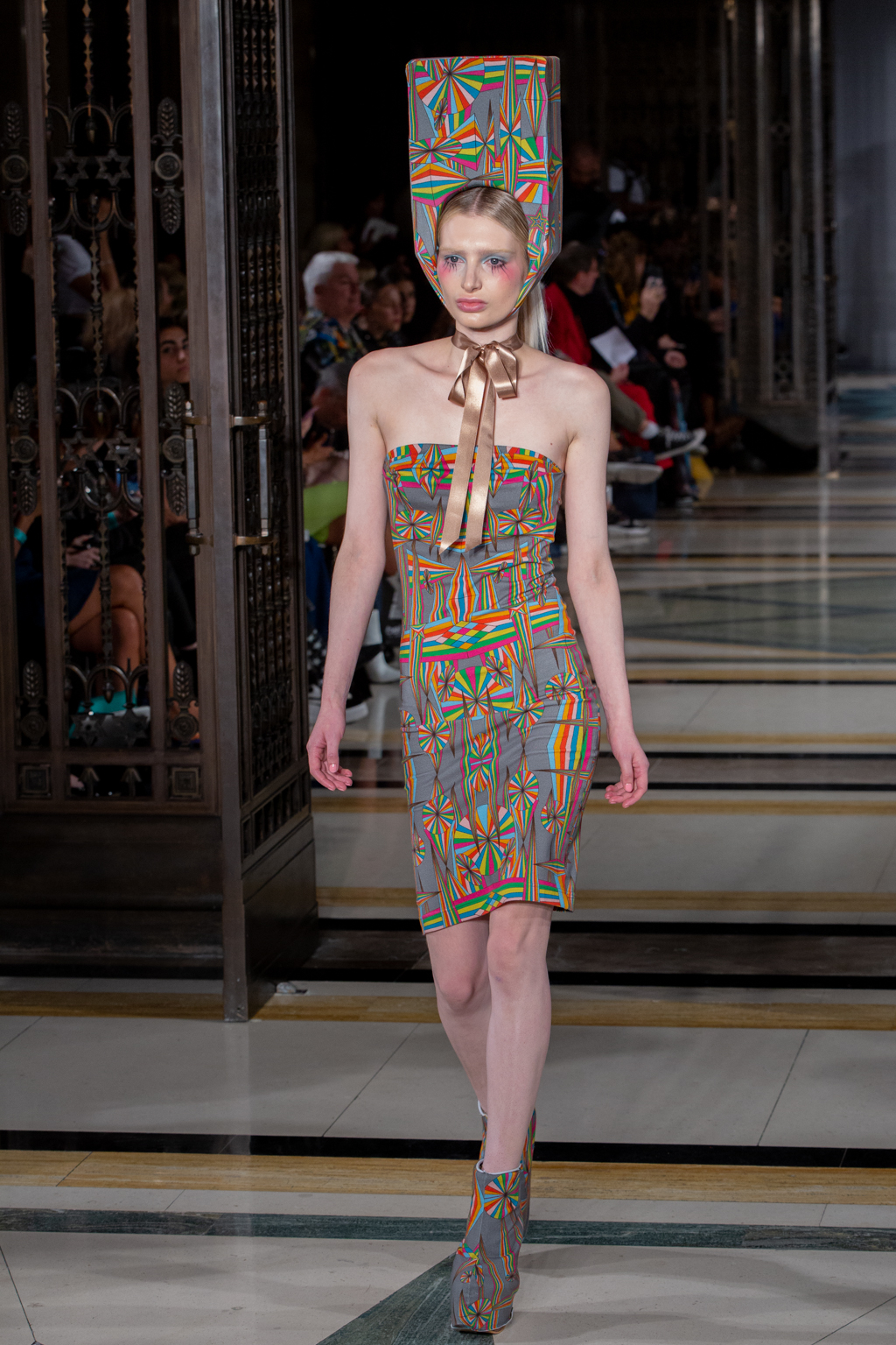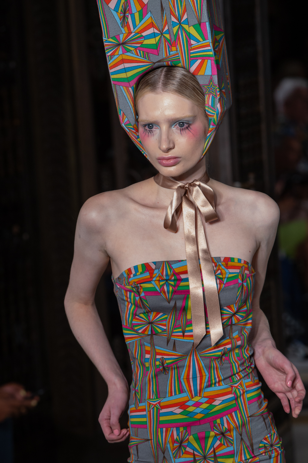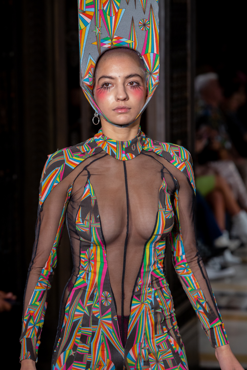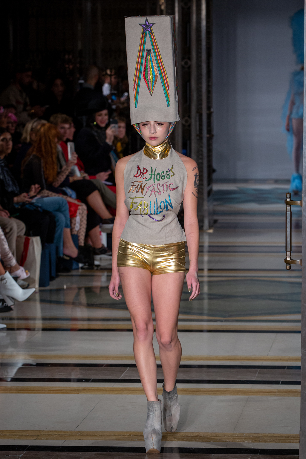 British fashion designer Pam Hogg’s latest collection is as bold, risqué and unconventional, just like her earlier creations.The show, titled Dr Hogg’s Fantastic Fabulon, takes the idea of clothing and transforms it into something altogether otherworldly, with large headpieces balanced precariously and tied under the chin, alongside sheer fabrics in vibrant and effervescent colours.