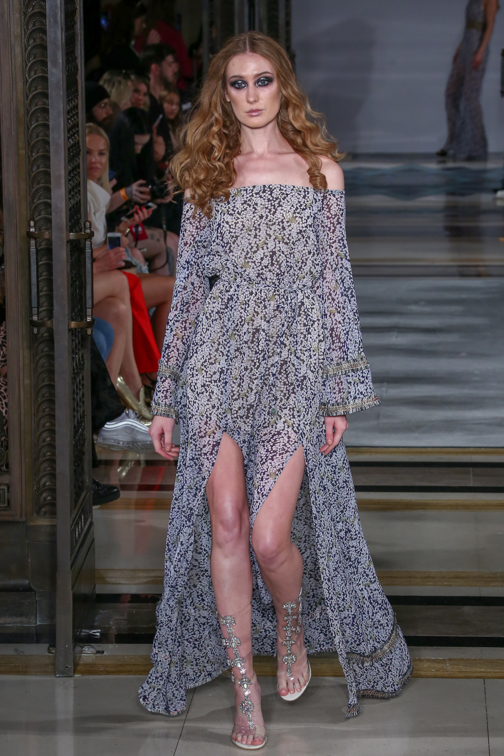 Exquisite blooms, ruffles and embroidered metallic cuff trimmings studded with minuscule pearls exuded the extravagance that Rohmir is renowned for.