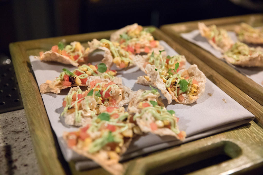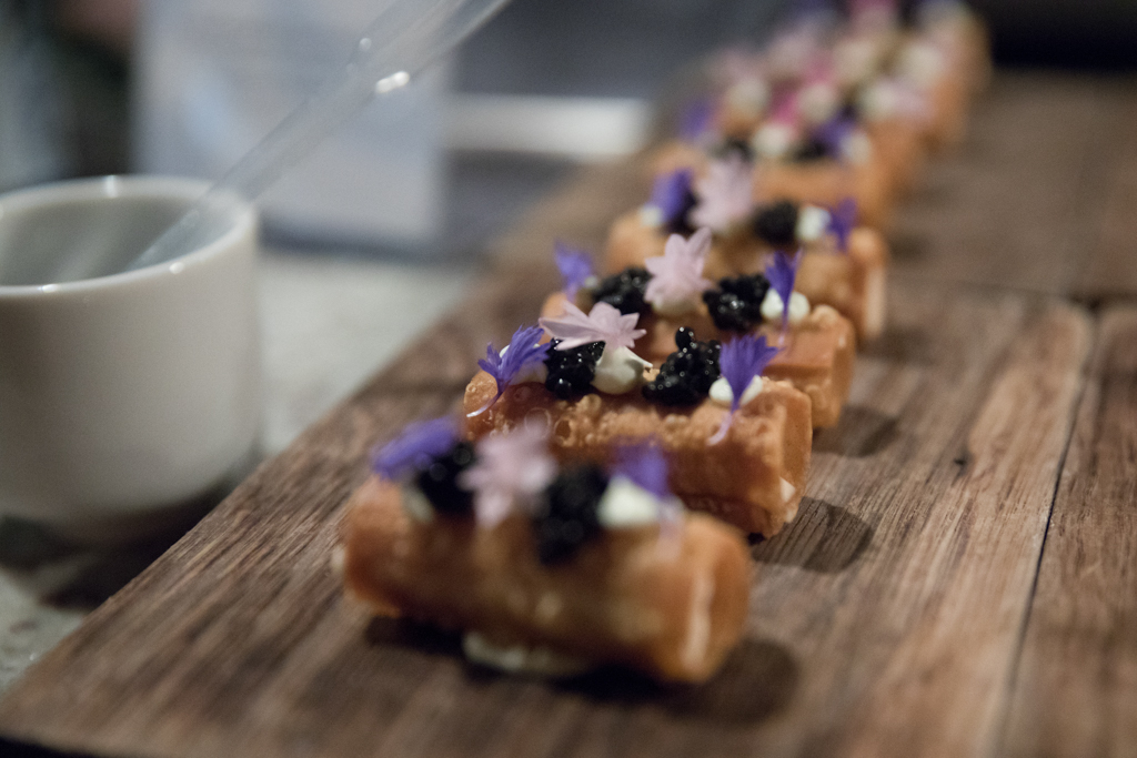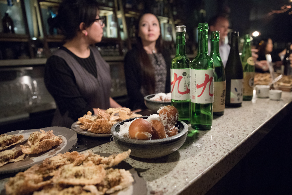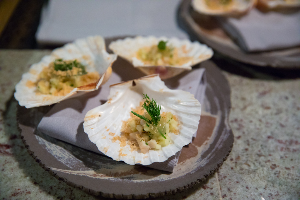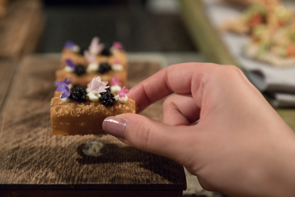 Sampling the menu, we had the chance to try a variety of interesting snacks to excite the palate. Among the dishes were scallops with hazelnuts, apple and lemon; some beautifully crafted cheese doughnuts, both filled and covered with a shredded parmesan; and a crunchy toast with tomatoes, onions, lemon, crab and avocado dressing – probably our favourites, though the milder of the bunch. This was followed by some lighter options on the fruitier side of the spectrum, meant to be accompanied by the “day-to-day” sake, which is sweeter, with a lower dose of alcohol per cup.
