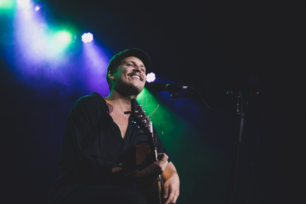 Barefoot on stage, as seems to be the vogue these days, the artist starts his set with Heaven from his soon-to-be-released album Laps Around the Sun. Each time there is a break in the song, fans are quick to scream their appreciation. During Four Feet in the Forest – part of on the eponymous 2016 EP – Alberts plays his acoustic electric guitar flat on his lap, adding a drum beat and tambourine by way of foot pedals. The musician’s performance feels a little unrehearsed due to a broken earpiece, but despite this, he eases his way into the set. Foraying into 2014’s Land & Sea, it’s no surprise the lyrics mention Ben Howard; the British singer-songwriter heavily influences Alberts’s music. The performer recounts the story of his personal journey of moving to Byron Bay, Australia, where he began busking, before playing Warm Coffee (The Market Song). The drumbeats are a little too simple and acoustically unchallenging, but the set is an Australian fan’s dream.