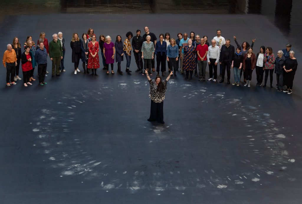 Upon entering the Turbine Hall across the shiny black floor – reminiscent of an oil spill – booming and unsettling bass reverberates, created by sound designer Steve Goodman. On the grey expanse, made using heat-sensitive paint, visitors are invited to lay down to produce a picture through body warmth. The image is that of a Syrian migrant who fled the country in 2011 with no money to his name, but who – with the help of local South London resident Natalie Bell – has gone on to become an NHS doctor. Bell’s name was chosen to replace The Boiler House building for the next year, honouring her work and positive impact on the community. Bruguera collaborated with 21 Tate Neighbours, all of whom work or live in the local area, in order to incorporate ideas of inclusivity at the gallery and manifest institutional changes through a series of stealth installations.