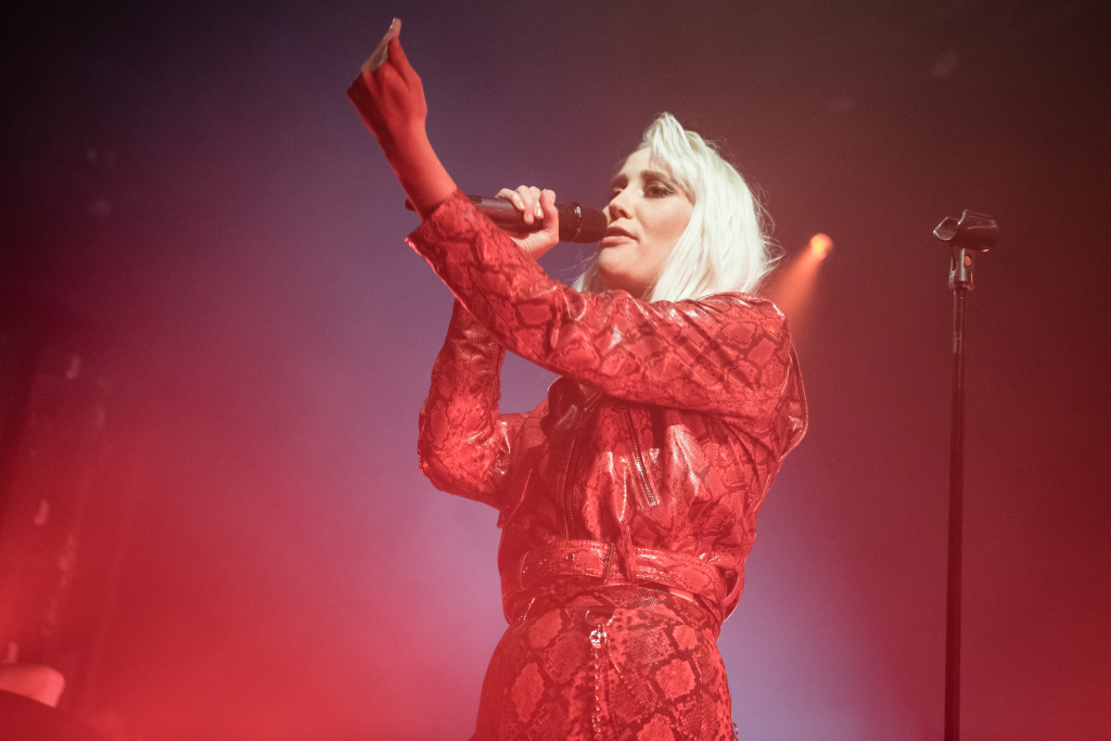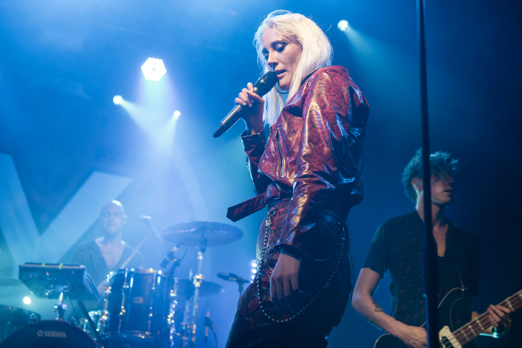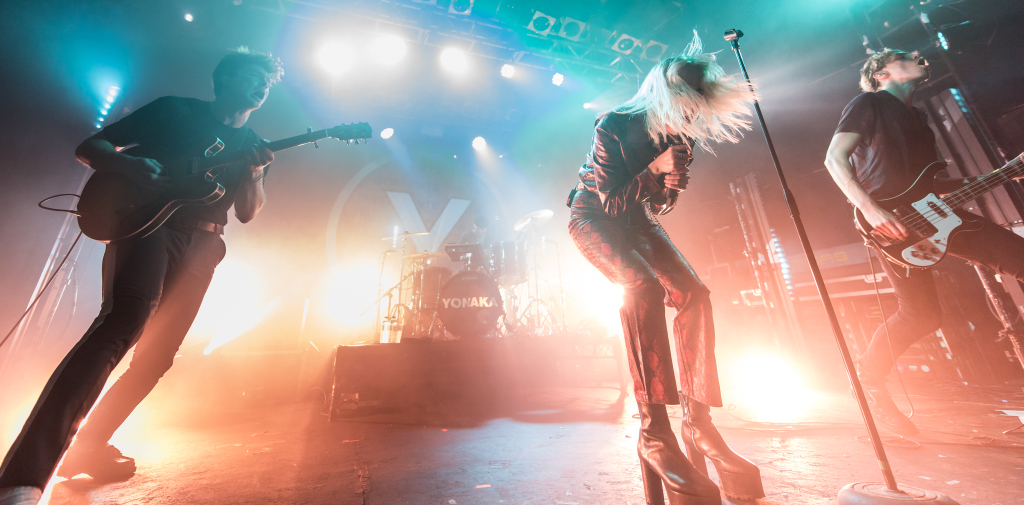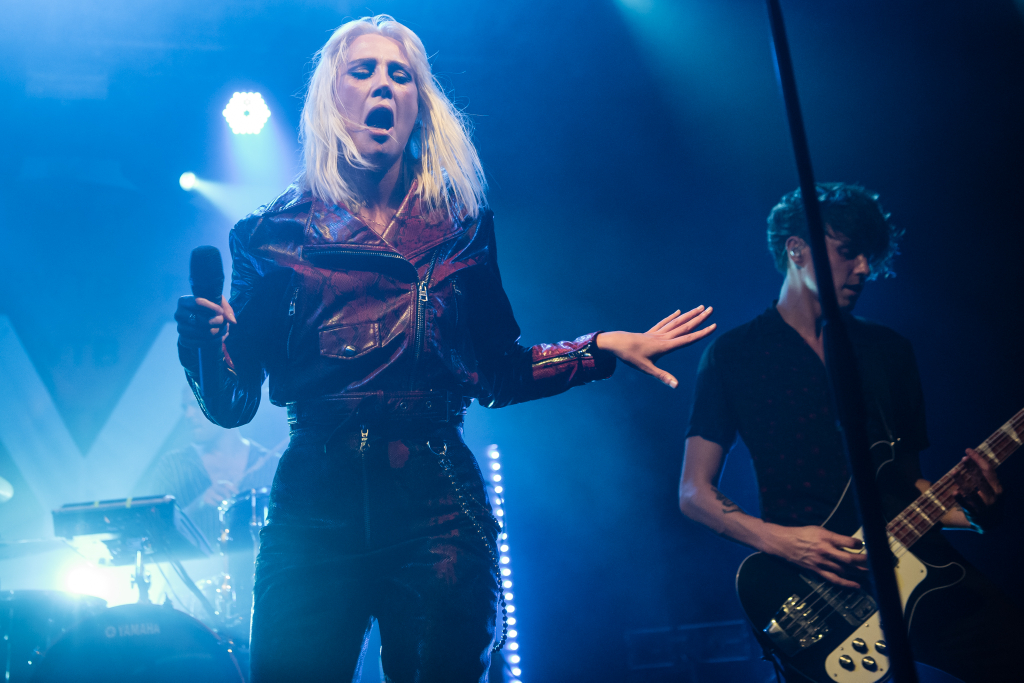 Fronting the band, Theresa Jarvis embodies this fluidity at the heart of the four-piece. She is at once the ferocious queen of rock clad head-to-toe in red snakeskin leather, the American hip-hop star jabbing at the crowd with her hand partially clenched to resemble a gun and the punk-y British pop mistress tossing cheeky profanities aside.