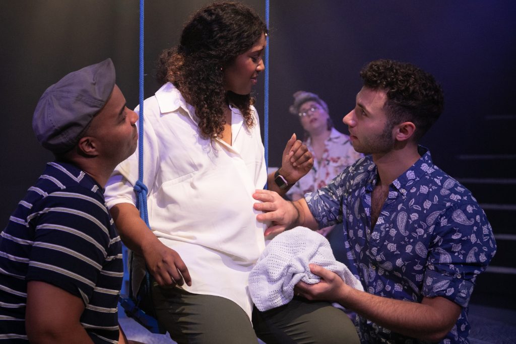 In terms of tempo, the music ebbs and flows like the tides, building up from gentle, tentative pacing to exalted crescendos and back, echoing the fluctuations in our lives. Joyous and upbeat while also thoughtful and wistful, the brilliant lyrics and melodies are emotionally cathartic. Simon Daw’s set is simple and very effective and evocative lighting by Andrew Ellis frames each scene for great emotional impact.