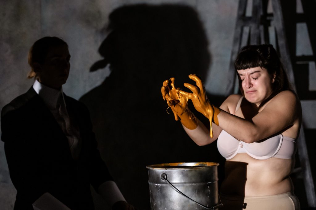 Artemesia calls out “It’s True” 131 times – interrupted only by her determined proclamation, “I will say this forever,” – as Stevens makes eye contact with each audience member. In the final scenes, Artemisia and Tassi change roles to depict Gentileschi’s painting Judith Slaying Holofernes, which mirrors the beheading of John the Baptist demanded by Salomé. The artist’s later life is relayed with the victorious rendition of Patti Smith’s Gloria; Artemisia goes on to become one of the most successful painters of the 17th Century, the first woman admitted to the academy of arts in Florence, and has a daughter, Prudenzia. With the powerful words, “As long as I live I will have control over my being. My lordship, I’ll show you what a woman can do,” we are left with the figure’s lasting legacy as a Renaissance painter.