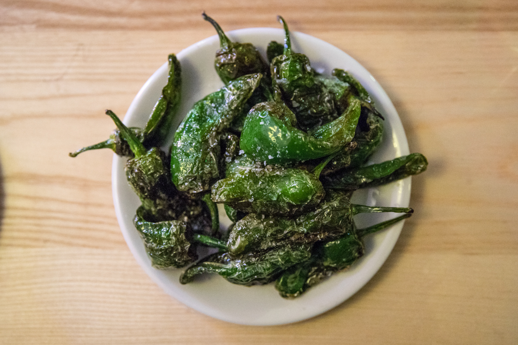 Among the plates on offer at the time of our visit were green olives – which we sampled as starters – followed by a generous portion of Padrón peppers, accompanied by a nice glass of Red Boar Bobal (Galician wine) and an oaked cocktail with a sweet yet subtle taste, balanced with a touch of lemon. We also had the pleasure of trying a drier red from Catalonia and a second citric cocktail, The Driver, in which the cava bubbles and orange scent made for an incredible drinking experience.