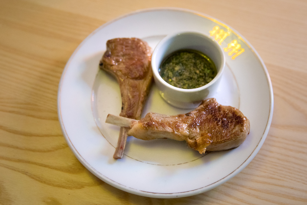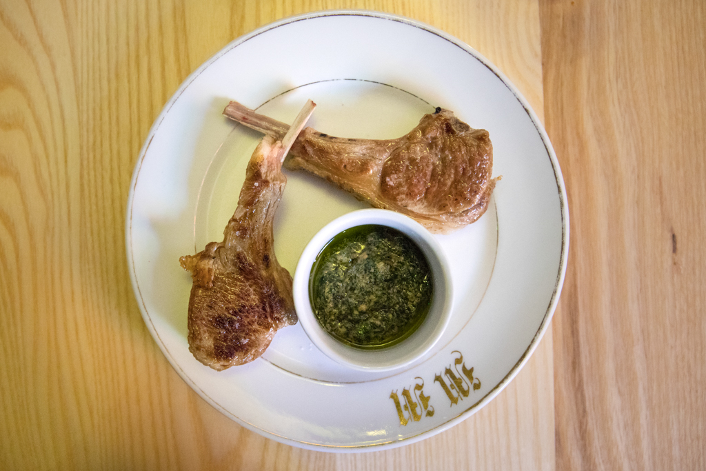 Another highlight of the night were the prawns brought to our table together with shaved courgette and fennel salad, which offered an understated celebration of high-quality ingredients. Prior to dessert we had to try the lamb chops, served with a parsley, lemon juice and brown anchovy sauce, a very interesting twist on salsa verde and a perfect match for the meat.
