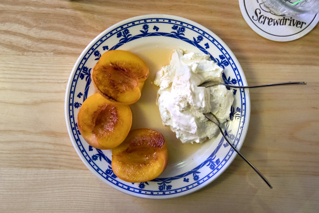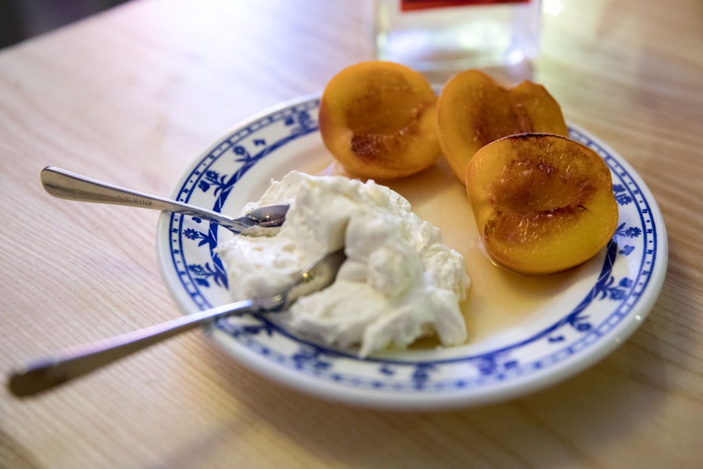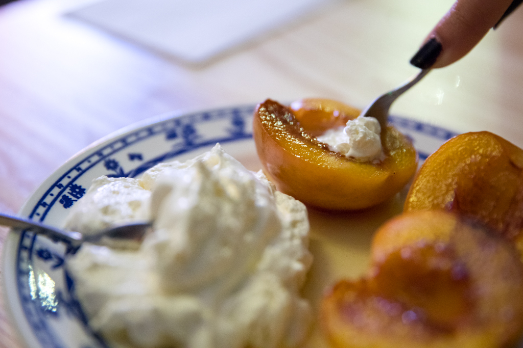 The Grilled Bellini (peaches) topped up the evening with a sweet and sour note, complemented by a soft, lightweight yet silky whipped cream. The fruits are kept in an almíbar of cava and sugar and then thrown directly onto the grill, creating a very nice contrast between flavours and temperatures.