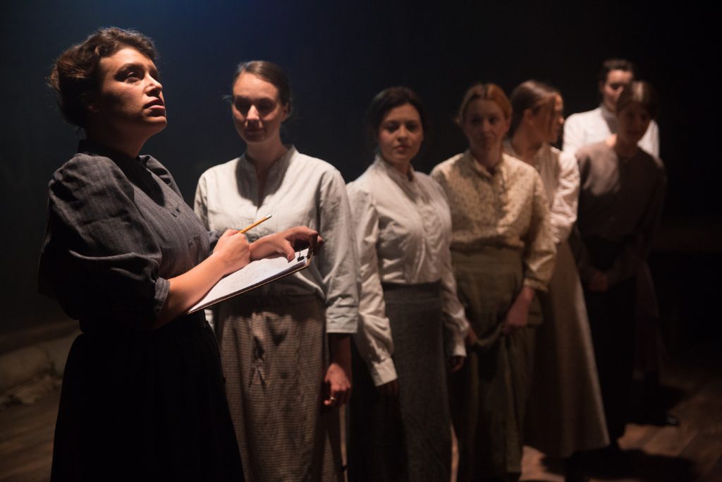 Despite the bleak history, Till injects a surprising amount of humour in his cultivated dialogue, especially with tasteful uses of words like “muff” and “titty” – the latter happens to be one of the characters’ names. The musical numbers alternate between cheerful and poignant but one thing remains consistent and that’s the ensemble’s exuberance. Till richly draws each character of both camps so that not only do we walk away remembering the Pals and the Lasses but the sort of individuals who were part of those valiant groups. Tom. George. Peggy. Eliza. Several more.
