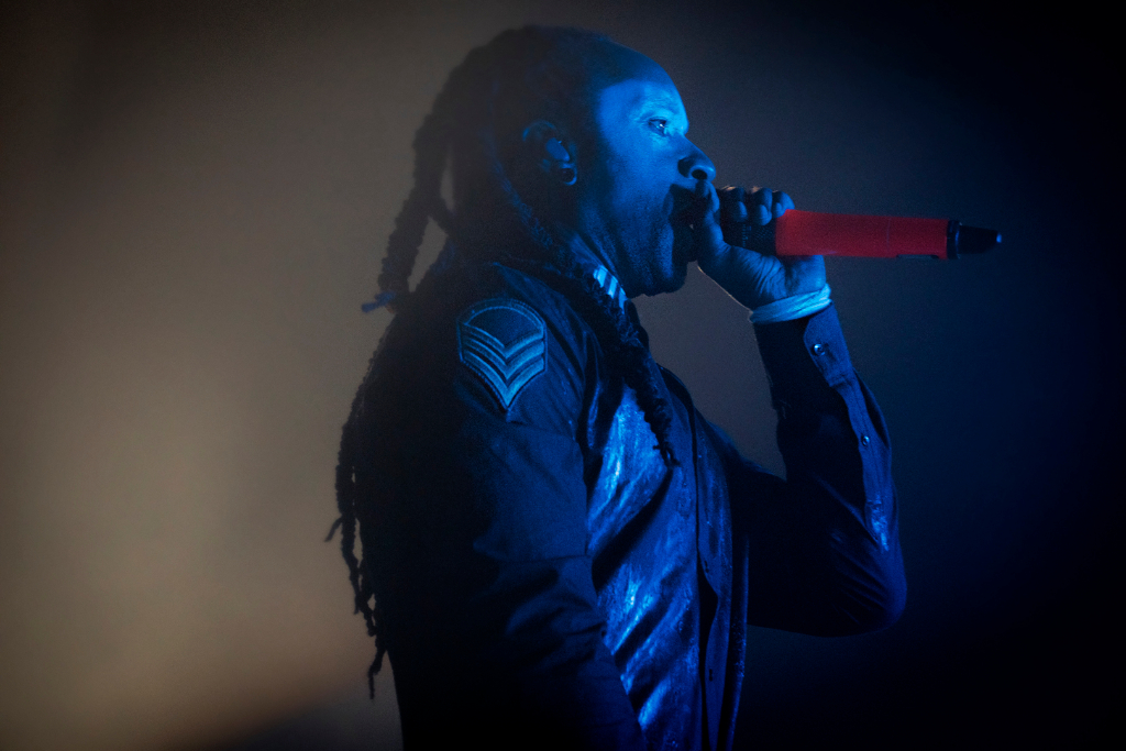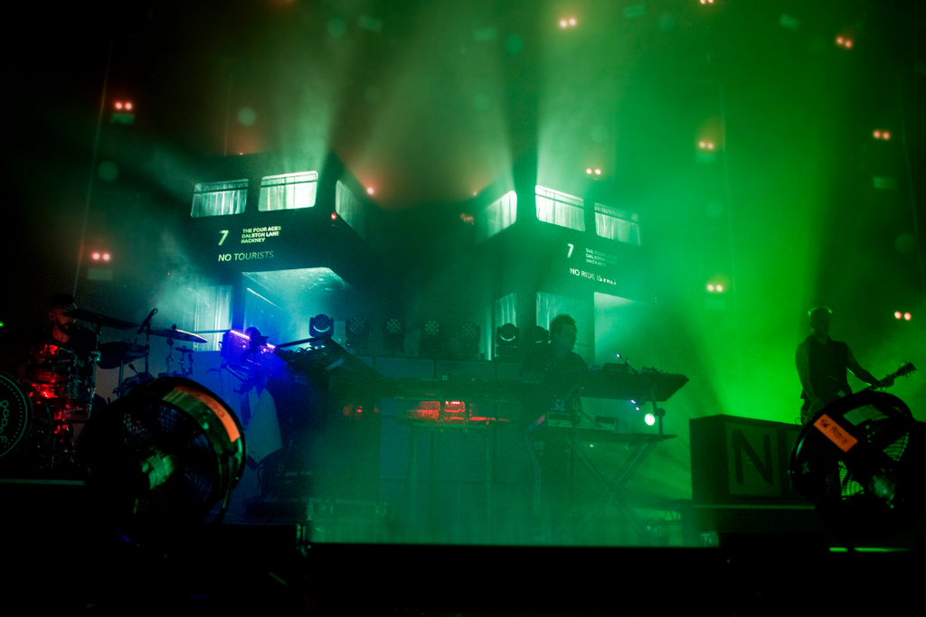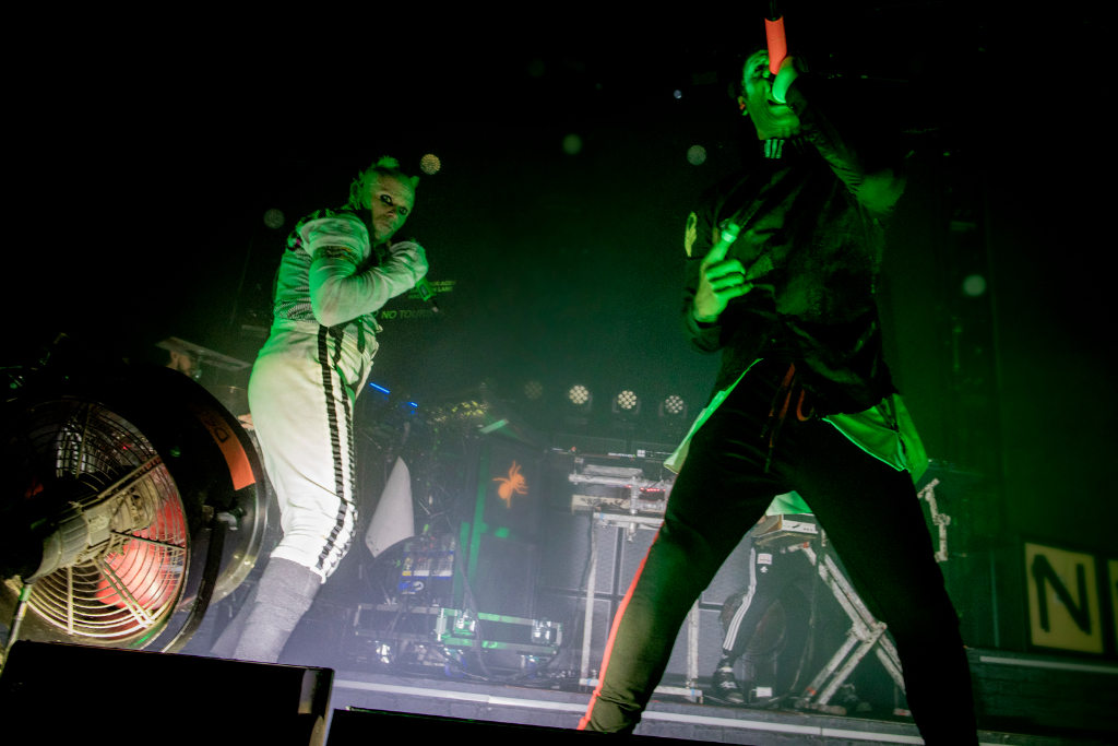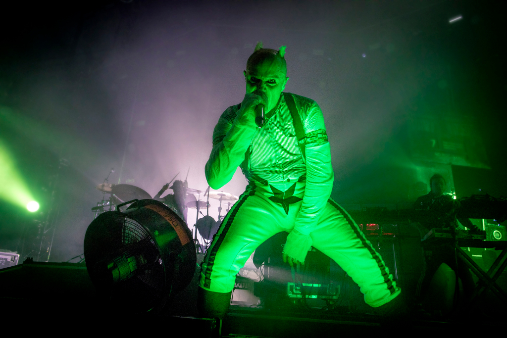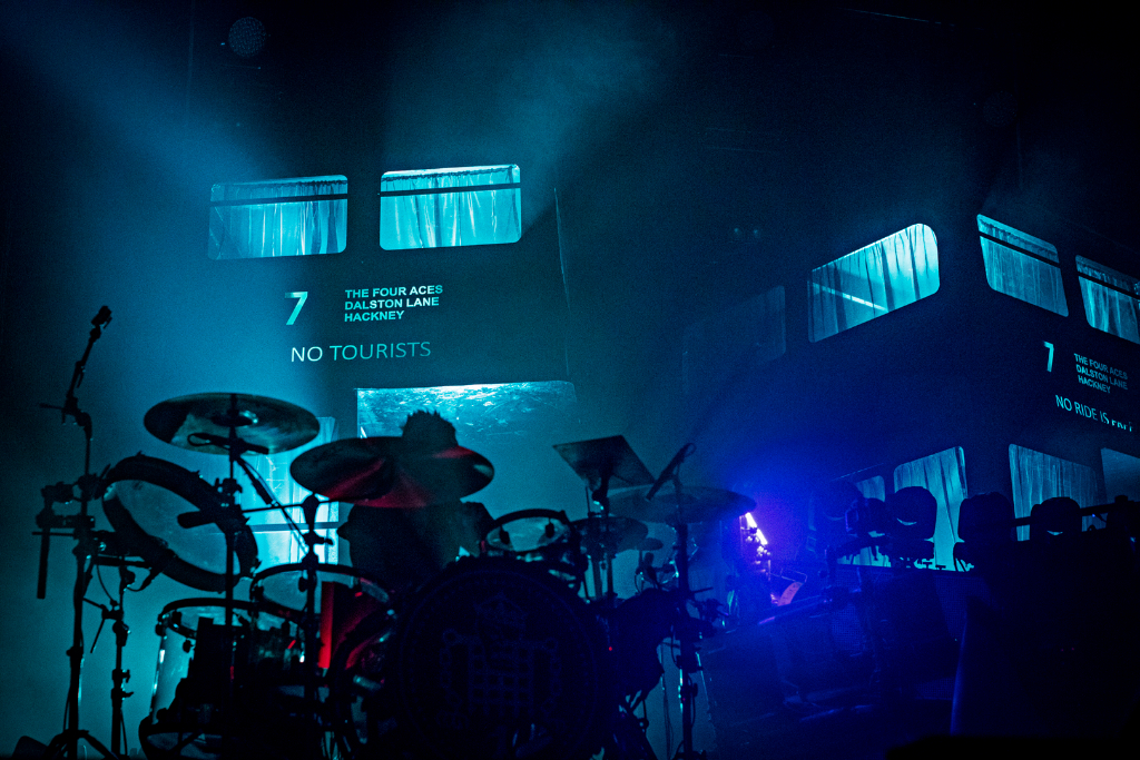 As the glimmering silver curtain cascades, revealing black London buses, an array of lights flash on, backed by laser sounds, MC Maxim shouting the lyrics to Breathe, (Fat of the Land, 1997) alongside Keith Flint’s vocals, and co-founder Liam Howlett’s deep bass setting the night off. Resonate, off latest record No Tourists exemplifies The Prodigy as a band who are unafraid of extreme performance, showing the same frenzied energy after nearly three decades. The lyrics to Nasty (The Day Is My Enemy, 2015) are lost amidst the hard-core techno, but as with most Prodigy songs, the music is their essence. Second highlight of the night, Omen, is a win with the crowd; as Maxim shouts, “All my people who came to party tonight, let me hear ya”, everyone collectively chants the chorus. Champions of London gets a fan so enthused, we can see a shoe arcing over the stage – this is only a brief glimpse into a standard Prodigy show.