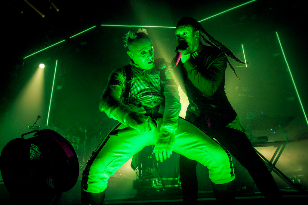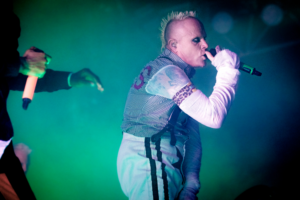 There are plenty of highlights, including Voodoo People (Music for the Jilted Generation, 1994) and Run with the Wolves (Invaders Must Die, 2009), the pulsing drumming reminiscent of 2009’s popular single Hot Ride. Shimmering samples on Roadblox provide a fresh-sounding element to the material, as the tracks have a formulaic drum and bass rhythm found across the group’s records. Smack My Bitch Up is another clear highlight, Maxim demanding everyone to get down, which is followed by the audience jumping with the ecstasy-fuelled chorus, and Sheila Chandra’s recorded vocals are haunting in the cavernous space.
