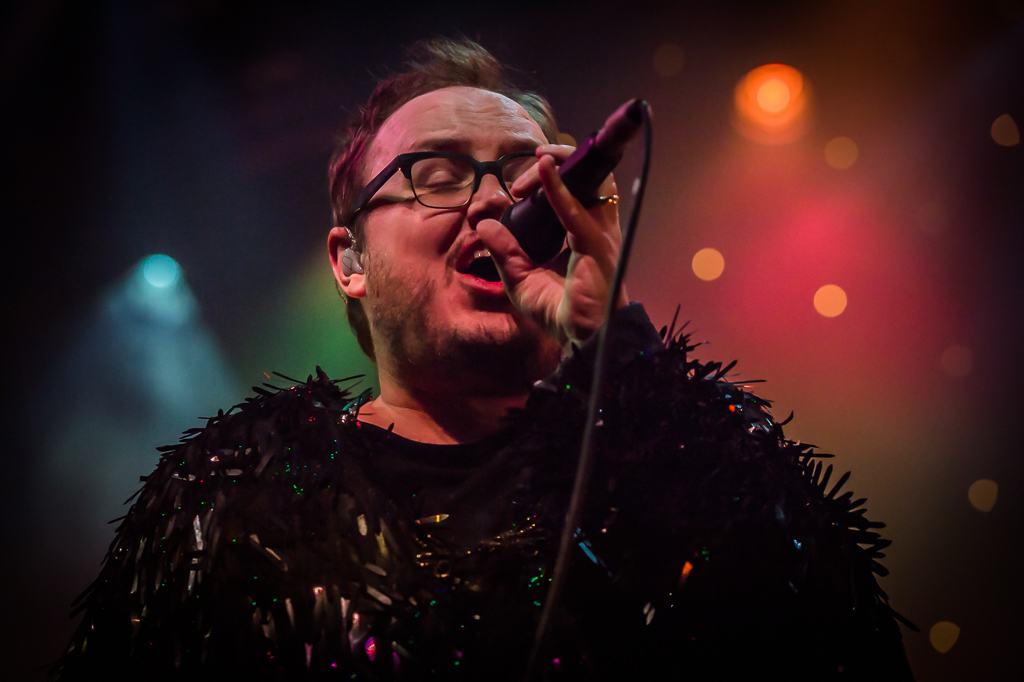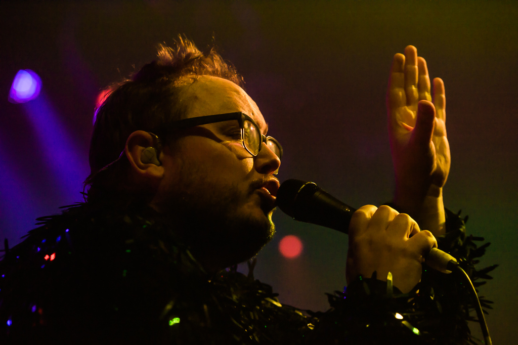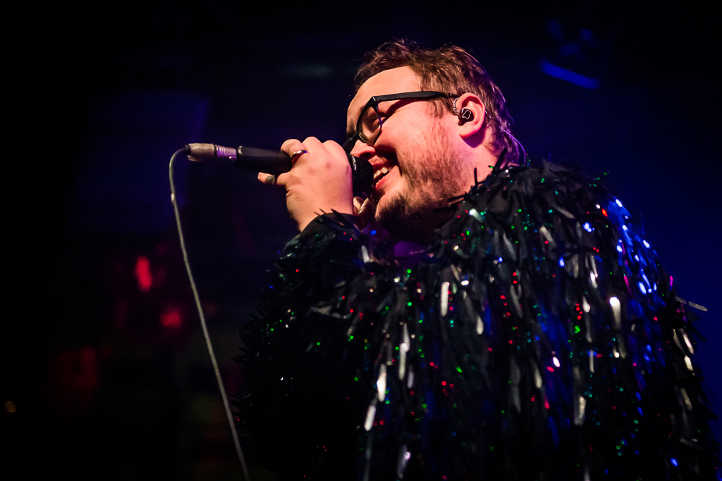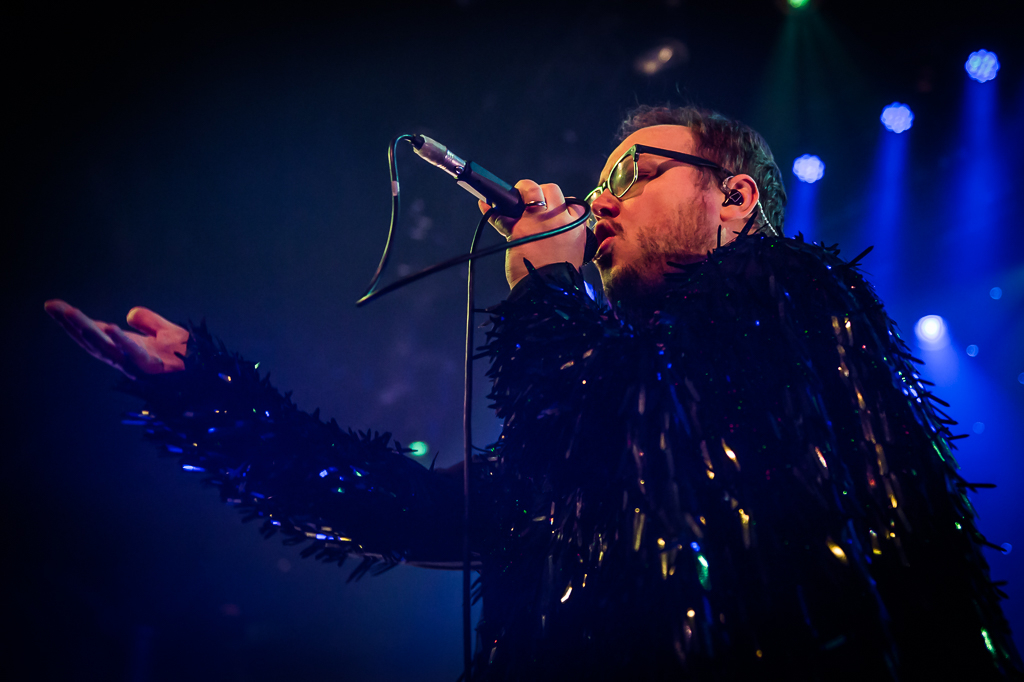 Frontman Paul Janeway swoops into view in a theatrical sequinned cape, sparkling before a backdrop of starry fairy-lights. With slightly more understated attire, the rest of the band take to their posts to open the show, starting with the emotive track Liv Without U – taken from their new album Young Sick Camellia  (2018). Janeway’s fervid vocals immediately soar to heavenly pitches, his breathtaking falsetto range never once losing traction as he rapidly captivates his audience.