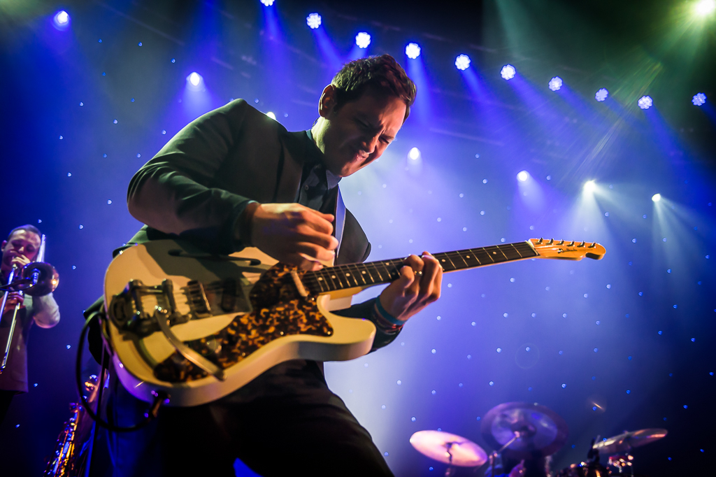 The frontman then steps aside to let his musicians shine: a trombone solo and a tremendous “music-off” with fellow saxophonist keep the crowd enchanted, whilst the beautiful ballad Bruised Fruit – another of their recent releases – simply melts the emotions. The ensemble’s mutual respect for each other is impenetrable as Janeway compliments them as the “best band in the world”.