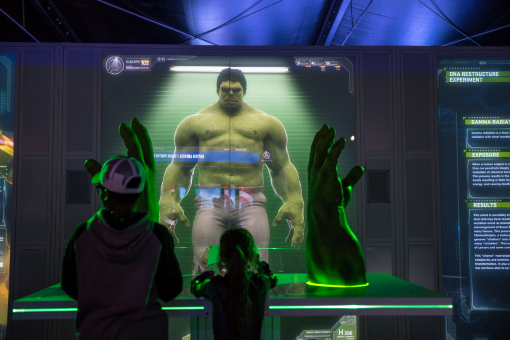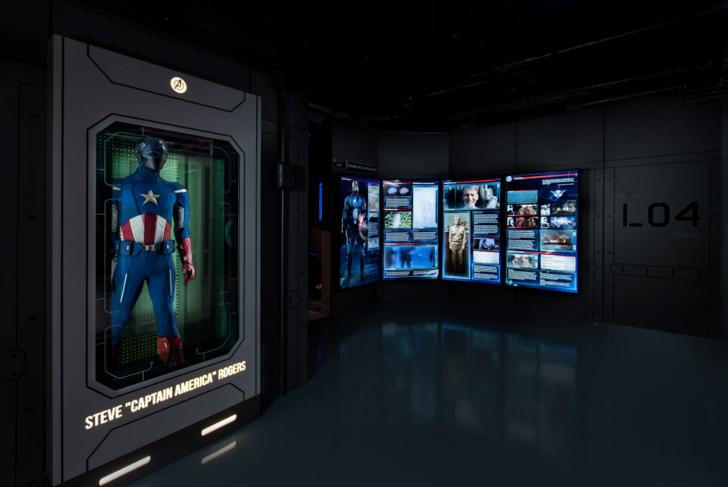 Small groups enter every ten minutes for a self-guided tour of the major Marvel Cinematic Universe iconography, exhibited through life-size suit replicas and interactive mini-games – particularly those related to the core superhero team. The experience peaks too early with the Iron Man section, wherein the view of the Hulkbuster model and his array of suits are really quite impressive. This is followed by a cool motion-sensing game – albeit one that’s Kinect when it could be Oculus – where audiences play as Tony Stark’s alter-ego and shoot enemies.