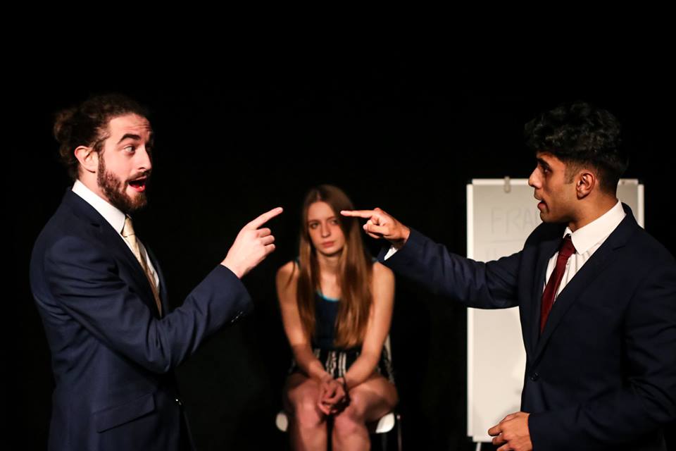 Never Swim Alone, directed by Alexander Hicks, is, at heart, a satirical exploration of the meaning of masculinity presented through the framing of a boxing match. Each round has a specific topic that works to pit the two men, Bill (Azan Ahmed) and Frank (Jack Dillion), against each other, covering the frivolous to the serious. The two performers work wonderfully off each other; their attempt at defining themselves as unique failing due to their similar dress and demeanour. The moments of talking over one another and together are executed with precision, wrapping up this idea of them being co-dependent on each other for the competition. The audience is kept engaged as the monologues are mainly focused towards them, utilising the intimate nature of the performance setting.