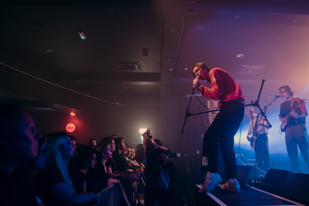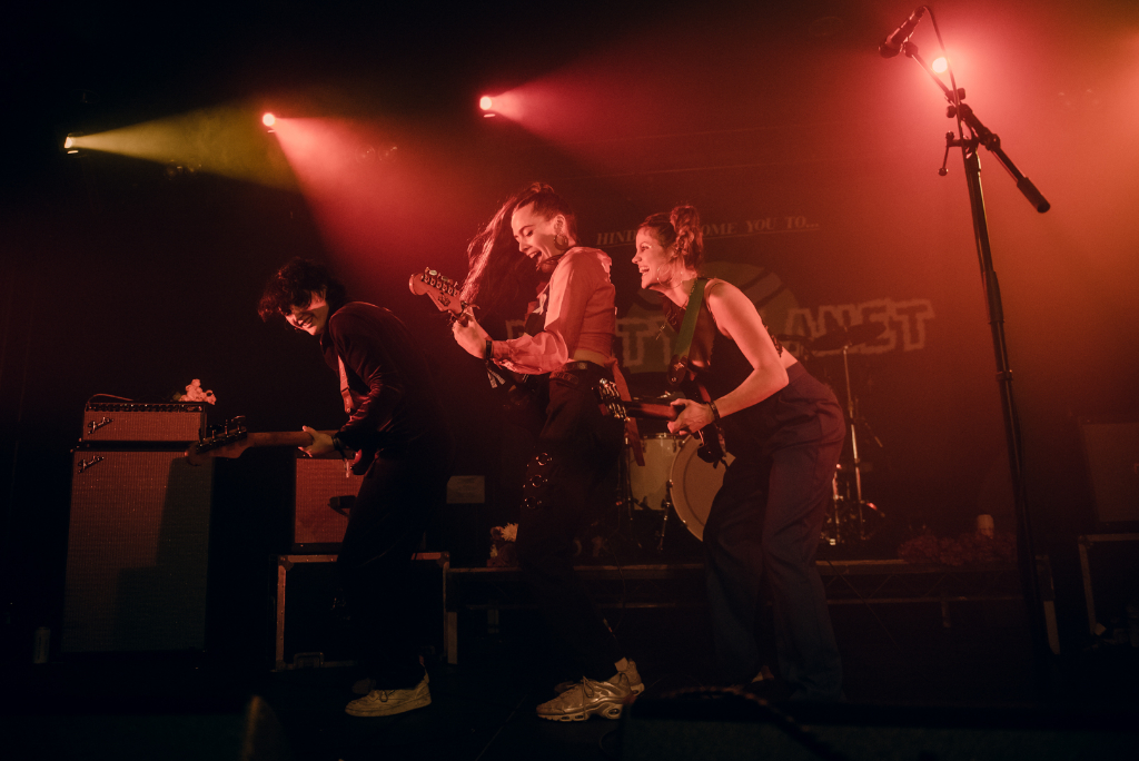 Sharp quietens the crowd by fluidly flowing into Pay the Tax from their recent debut album Binary Childhood. The vocalist’s infectious interaction with the crowd is unsurprising on discovering that Otzeki categorise themselves under performing arts on social media. Early on in the set, Sharp climbs down from the stage, gulps water and scatters the rest over the audience, some enjoying this, others walking away from the front. During Are You for Real? the singer motions for everyone to hunch down, directly looking into the eyes of individuals, making it a personal gig of sorts. Their performance fills the spectator with anticipation and contains an edginess that is rare in most current concerts. Shimmering guitar riffs shine in the elongated Already Dead, and the set ends with the “short and sweet” dance track Foreign Love.