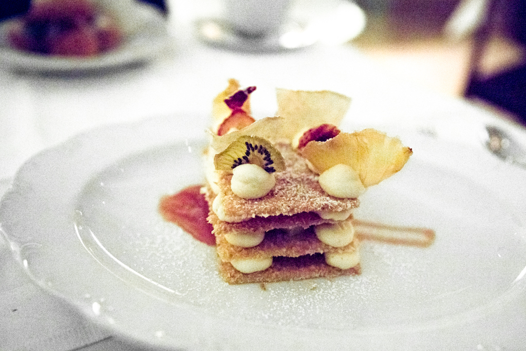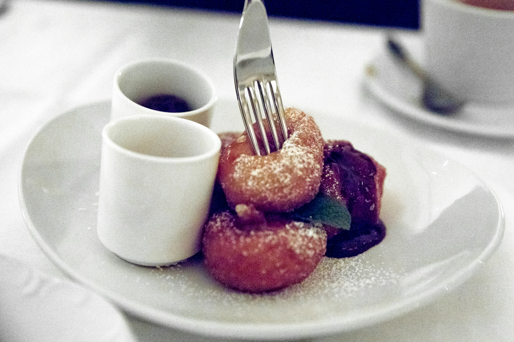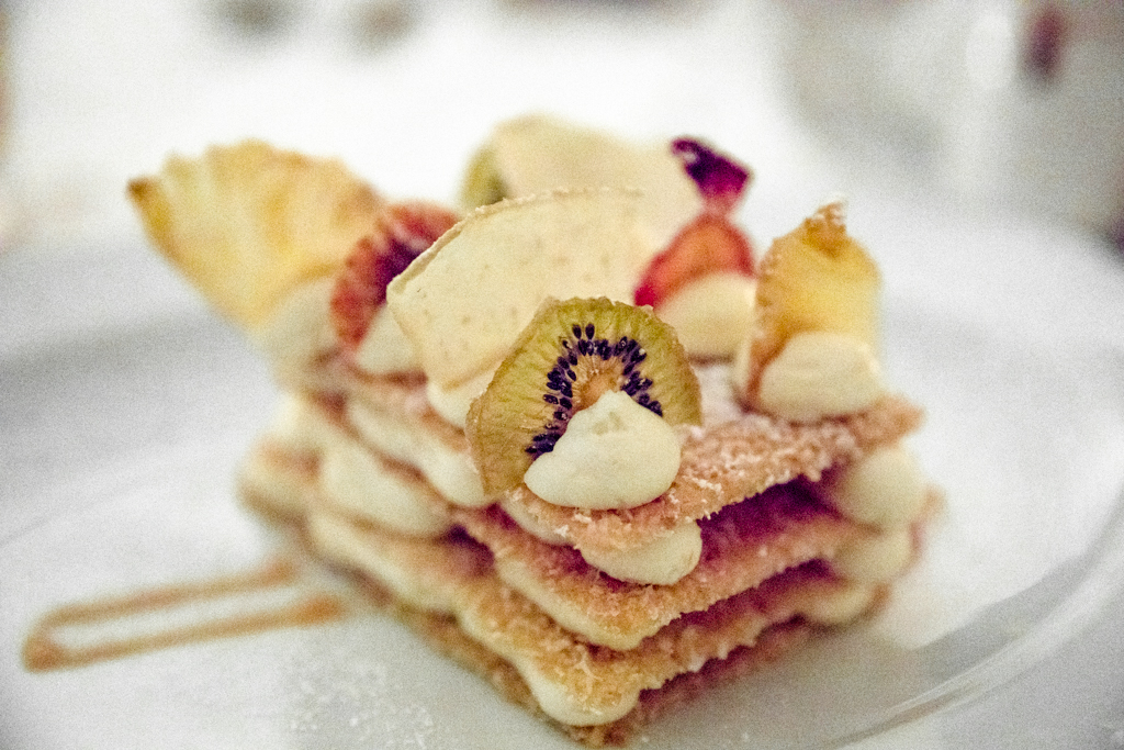 Time for dessert, kicked off by a Guava-whipped Layered Cheesecake that arrived simply begging to go on Instagram. Shards of pretty dehydrated tropical fruit shone atop the cake, although we found the thick, slightly sickly consistency of the cream far too rich, welcoming instead the Mexican Doughnuts with two dunking options – chocolate and caramel – which we devoured happily with sugary lips.
