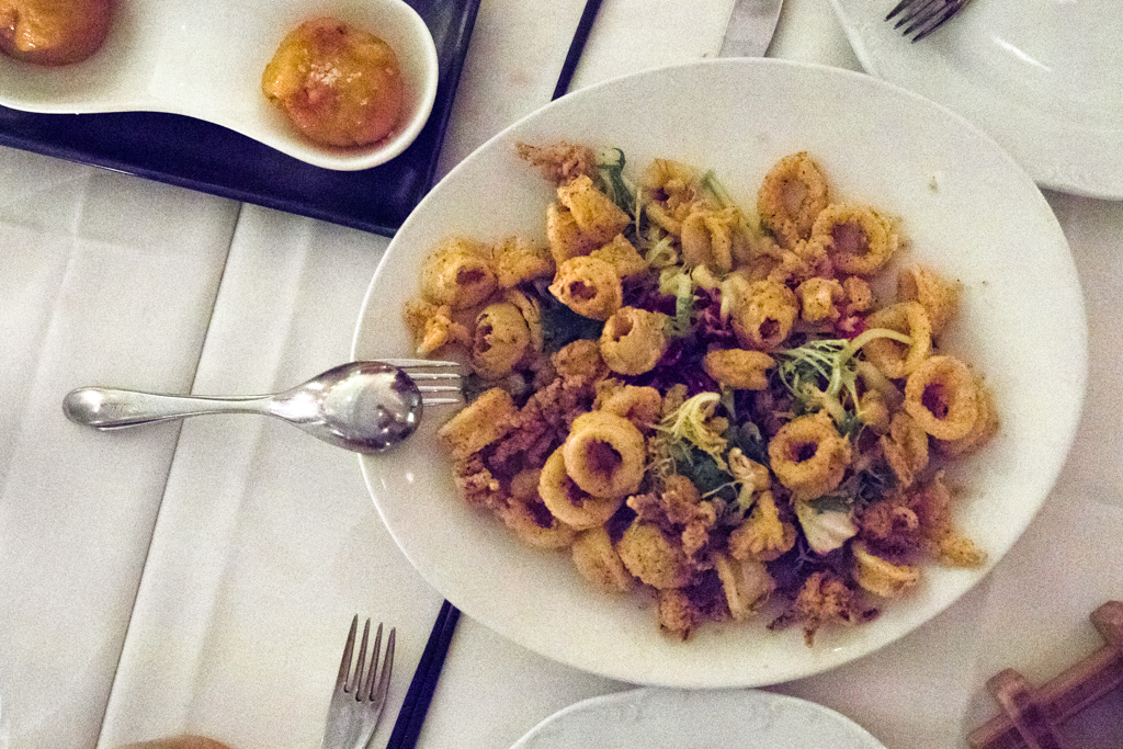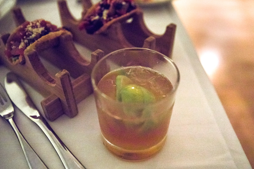 Baptising our evening with intoxicating cocktails, we began with one of the restaurant’s signature recommendations, El Dictator. The description promising a sour blend of rum, Martini and apple swirled in crushed ice and muddled limes, we were surprised to find the aperitif rather on the sweet side, and ended up pushing it aside for some of the fruitier options.