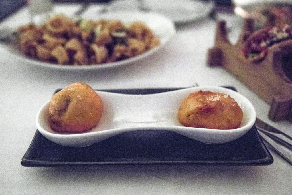 Next, we tried the Black Bean and Plantain Empanadas, their piquant, hearty filling contained in four mini Cornish-style pasties which we easy quaffed in seconds. We were recommended to try the Ducknuts, which arrived as two savoury doughnuts. These were unfortunately doughy and over-hyped, and we preferred the generous Crispy Calamari, which was an instant hit. Crunchy, perfectly seasoned coils of calamari were wonderfully balanced with a lovely zesty salad bouncing with orange-glazed cashew nuts.