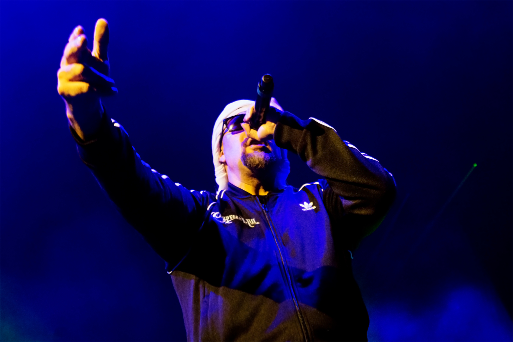 The MCs brought that intoxicating energy to the Brixton Academy stage as they opened their 90-minute set with an epic performance by Mix Master Mike on the turntables, followed by the album’s first full track Band of Gypsies. The tune, which sees B-Real and Sen Dog go head-to-head over instrumentation by local street musicians in Egypt, begins with a shaabi Arabic intro verse/declaration of stoner-hood. It then phases into Cypress Hill’s signature hip-hop style with a tribal twist, the theme of the remainder of the LP.