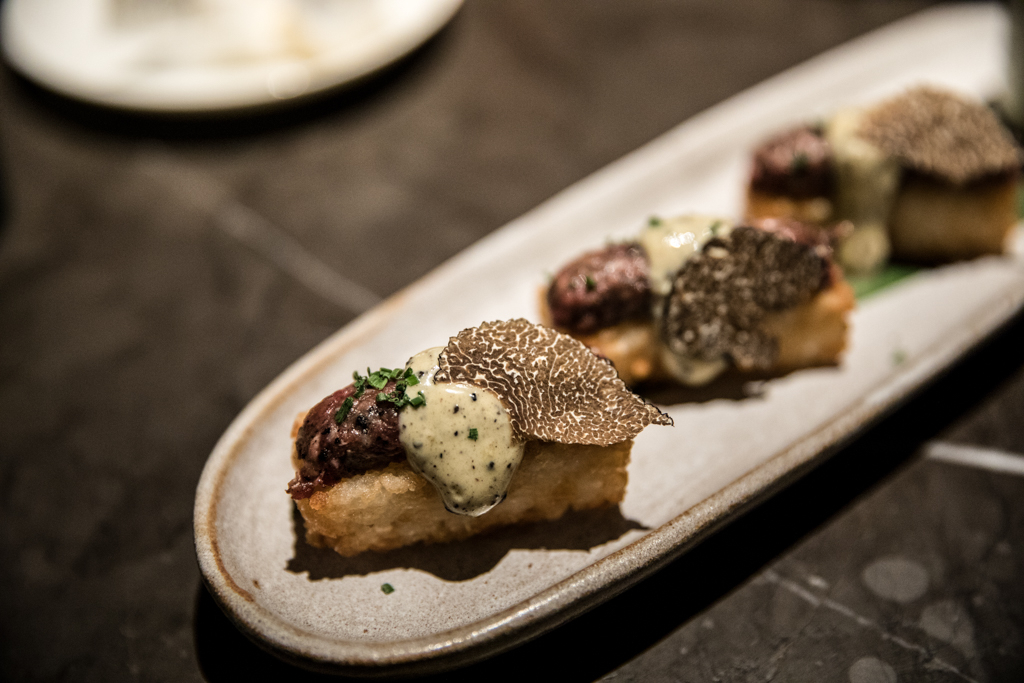 We began our meal with a selection from the Japanese cuisine on the left side of the menu. The tender Nigiri King Salmon gave us proof of the aforementioned excellent standard of the produce. But it was with the sushi that the chef indulged in his own original take. Our favourite pick was the Mango Alaskan King Crab: the slightly crispy seafood topped a thin layer of fruit, perfectly fusing with the avocado nestled inside the rice. The other pleasant discovery was the Crispy Wagyu Beef Nigiri, in which the more solid base and fine meaty pieces melted with the dashi and truffle aioli in gratifying mouthfuls.
