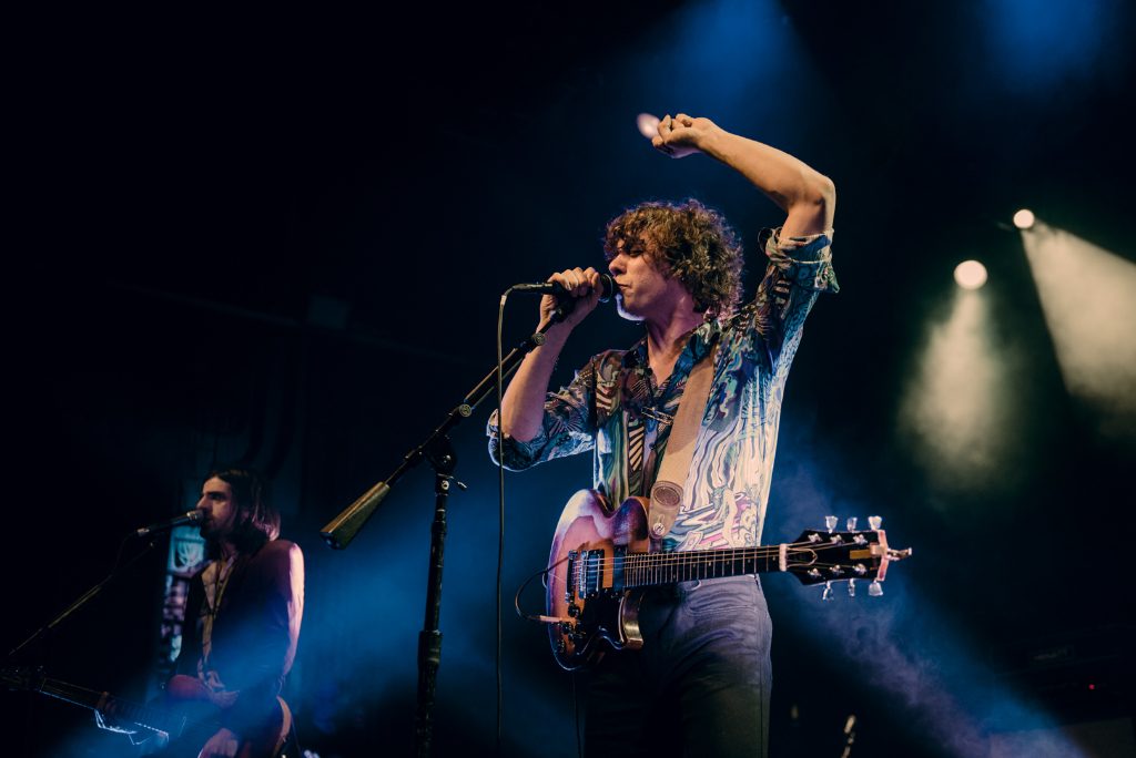 One of the defining tracks of the 2000s and a definite highlight, Golden Touch, produces nostalgia when the audience are left to sing the chorus, hundreds of voices collectively belting their hearts out. Continuing in a similar wistful mood, the group perform I Can’t Stop This Feeling I’ve Got, backed by the surprising hard verse, displaying their versatility. The rock‘n’roll attitude of In the City captures the frenzied energy, disjointed structures backed by a great bass riff that unexpectedly echoes Rage Against the Machine. Borrell thanks the audience, following this with Before I Fall to Pieces, another hit with fans, who are clearly enjoying themselves. They take it down a notch with 1950s-style Who Needs Love, the frontman teetering on the edge of the stage, fitting the rock star form. The band complete the first half with sombre ballad Wire to Wire, from 2008’s Slipway Fires, and there is a semblance to Under the Milky Way by Australian psychedelic rock group The Church.