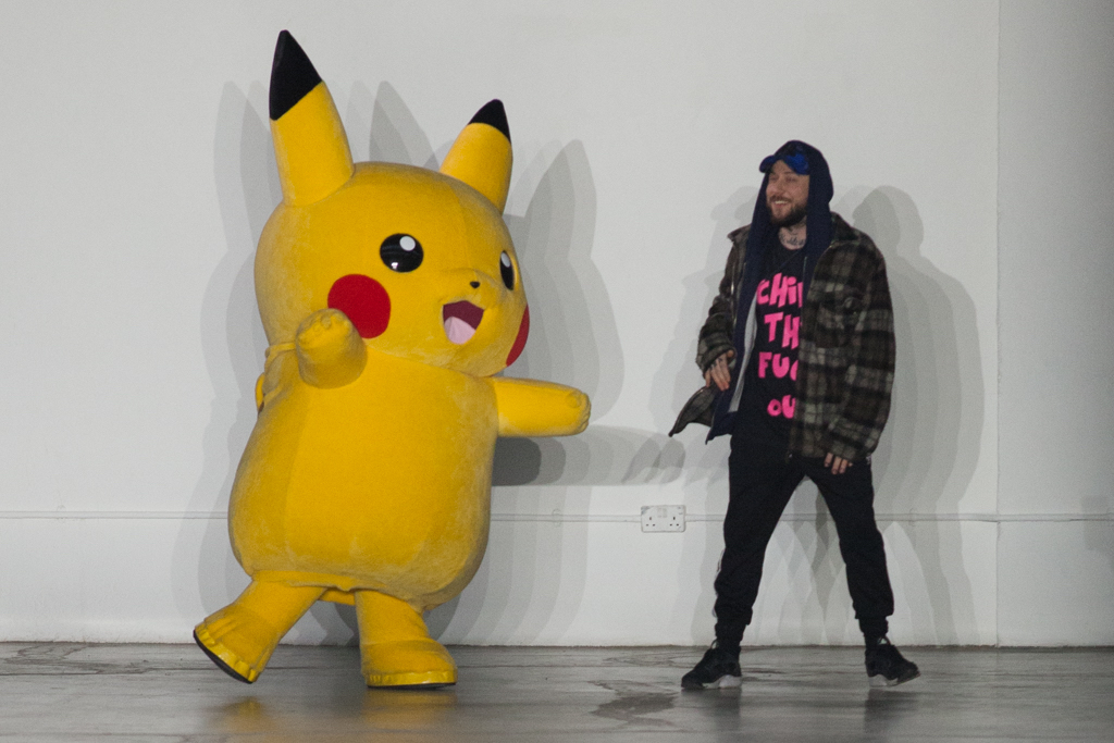 Aside from the Pokemon hijack, the collection was sportswear-inspired and technical fabrics featured heavily, with the addition of corduroy wide-cut trousers, white vinyl cut into jogging bottoms, and a blanket tracksuit with appliquéd leather lettering spelling out “Whatever Forever”, which referenced one of the designer’s many tattoos.