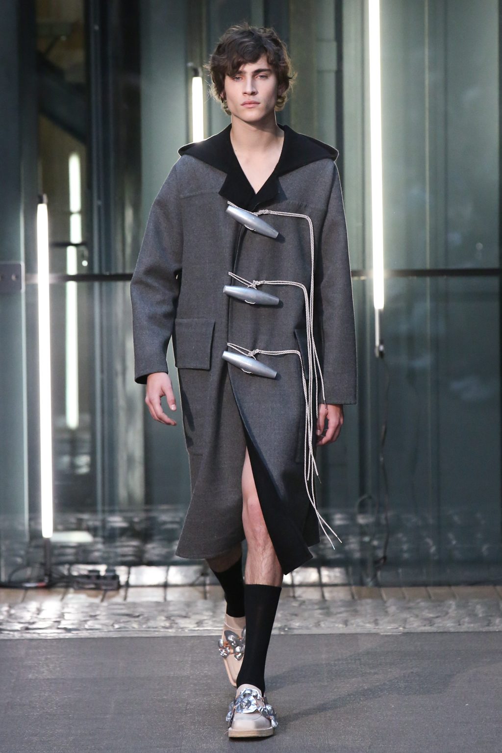 This season, PRONOUNCE – founded by Milan/Shanghai-based duo Yushan Li and Jun Zhou – channelled artist Thomas Mailaender’s creative use of light in his “Illustrated People” photographs, which inspired the designers to explore the abstract relationship between light and individuals.