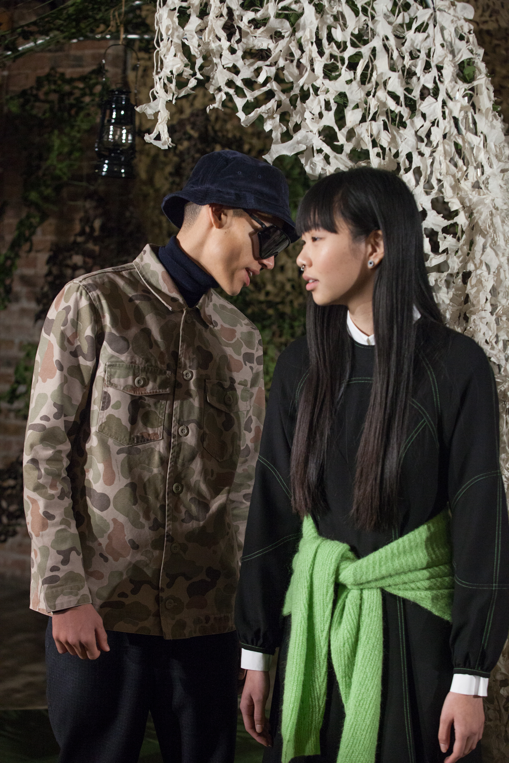 For menswear, an evergreen colour palette of forest green, khaki and driftwood was utilised in outerwear such as parkas, M65 hooded jackets, and camouflage-print utility jackets. Additional outerwear included a luxurious tweed coat and a 90s-inspired sporty fleece vest and jacket. Elsewhere, chunky fabrics were combined with a performance element and functional details, emulating a wintry Nordic fashion.