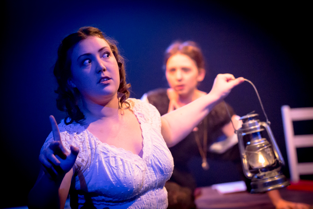The piece opens upon a future relative, John Lister (Alex Stevens), and his friend Arthur (Tom Hartill) attempting to carefully decode the memoirs strewn with Greek and algebra symbols that John has found. They uncover an intellectual and provocative dossier of Anne’s affluent upbringing and numerous romantic female liaisons. We follow her story as both the actresses who play her deliver seductive performances, laden with confidence in some erotically charged scenes.