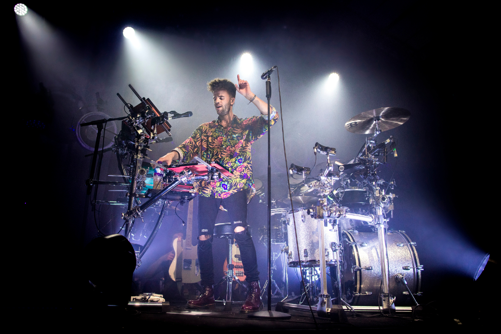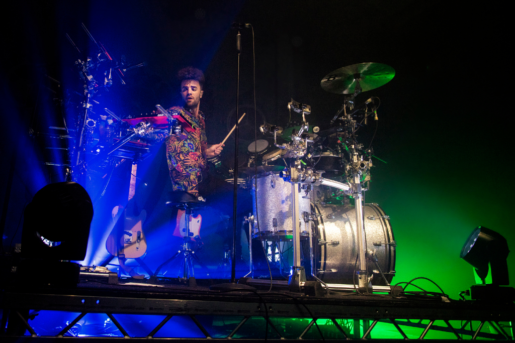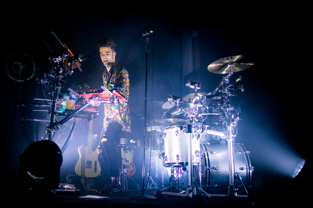 Appearing on stage with a shoutout to London, the musician starts with new single Obsession from the eponymous EP – consisting of his signature looped compositions and reverb vocals – as he energetically plays an endless array of percussion instruments, absolutely slaying it on the electronic pads and drum kits. The producer performs a mash-up of Fleetwood Mac’s Dreams with his own track September Sun (This is Not an Album, 2017), surprisingly blending the composition into Daft Punk’s One More Time.