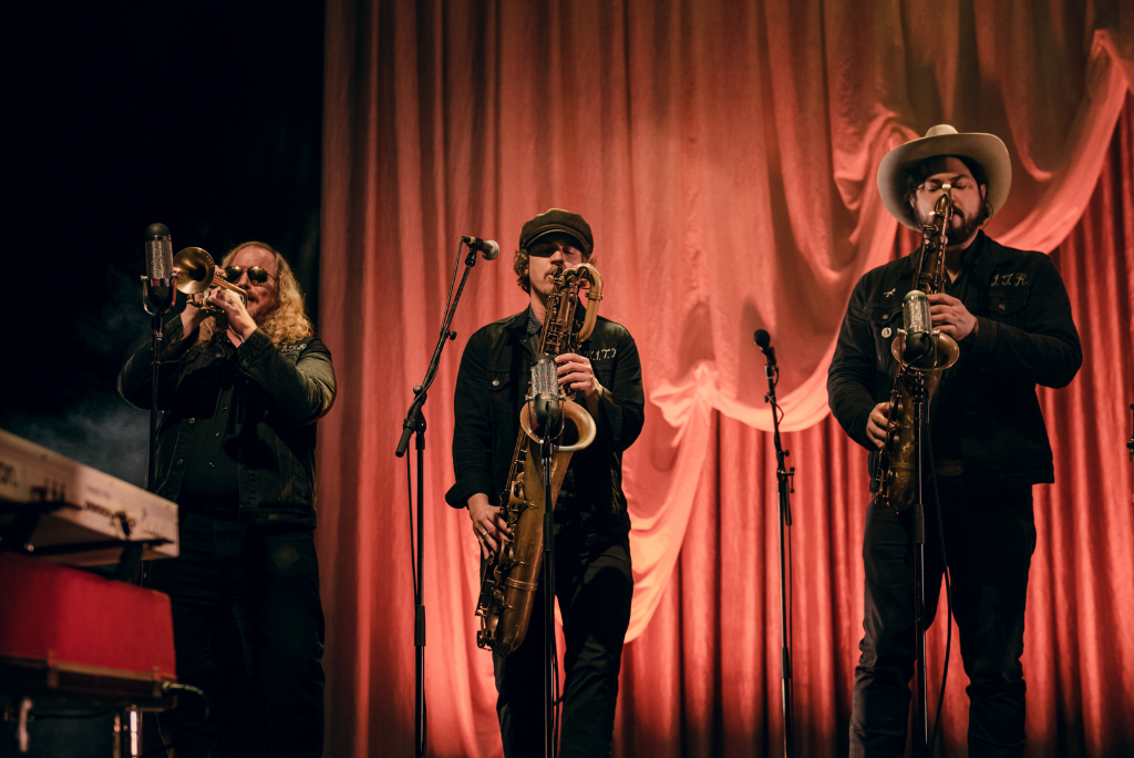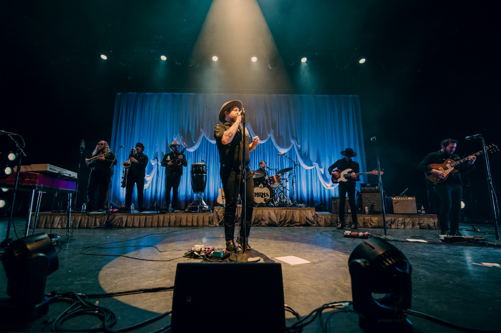 Tearing at the Seams, Nathaniel Rateliff’s second album with the seven-man band the Night Sweats is the distinctive sound of nostalgia of the 60s. The funky rhythms of the musicians and the rustic soul of Rateliff’s voice celebrate the best years of their label, Stax Records. Shoe Boot and Be There started the night off on a high note with the swelling organs and the vibrant, funky horn section, accompanied by a chorus of feet stomping and clapping across the packed theatre.
