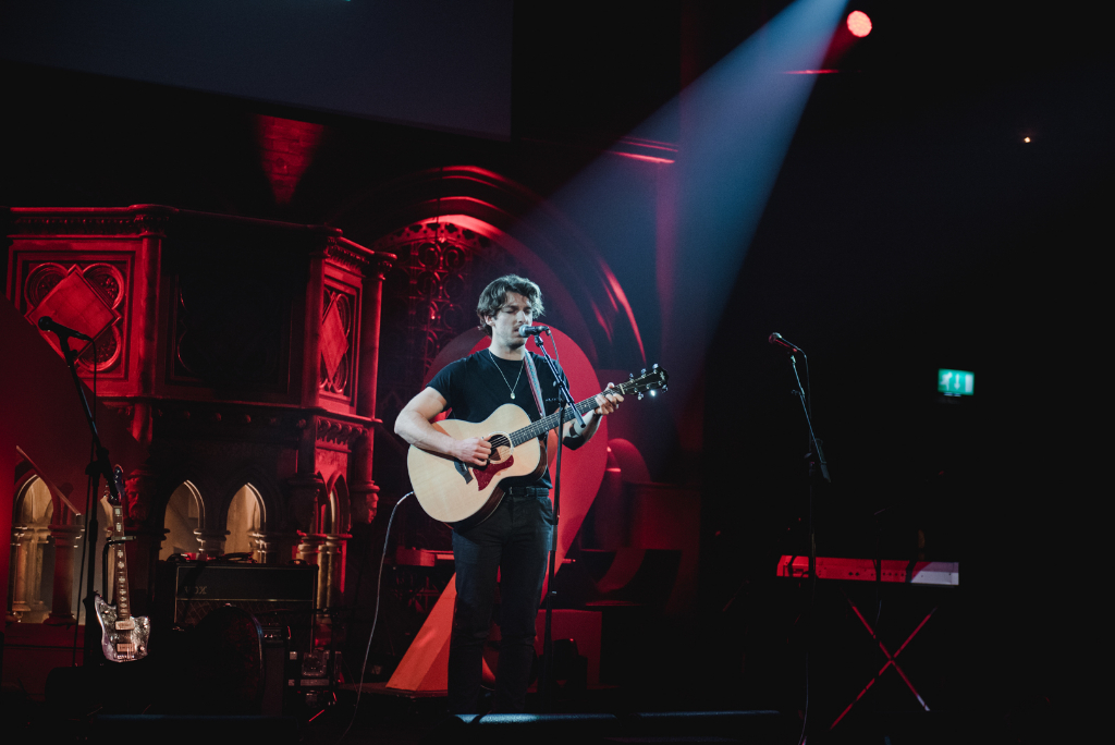 After a 30-minute break in which the audience thronged the Chapel’s lovely bar, Editors’ Tom Smith delivered a solo-performance that moved the crowd to the edge of their pews. Especially his piano-led rendition of Blood, off 2005’s hit album The Back Room, drew a collective gasp from the audience. In a delightfully unexpected turn of events, he then called his good friend Andy Burrows (We Are Scientists, ex-Razorlight) to the stage, and the two played together just like when they toured in 2011 as Smith & Burrows, covering Roy Orbison’s timeless classic You Got It as their final act.