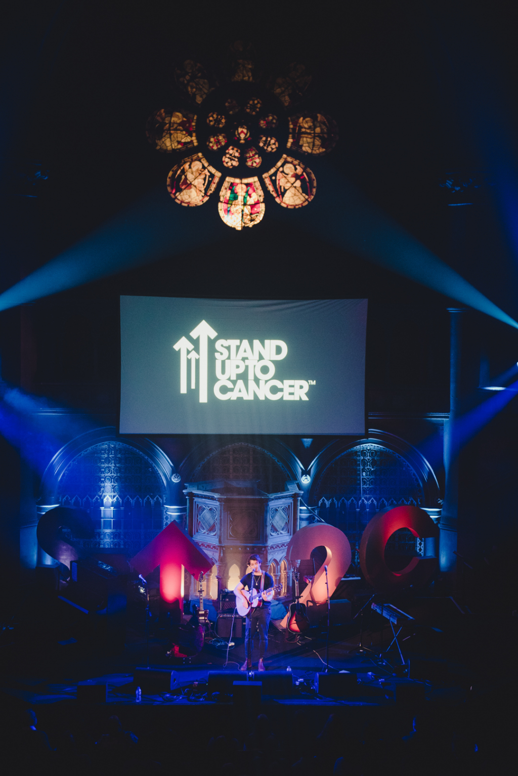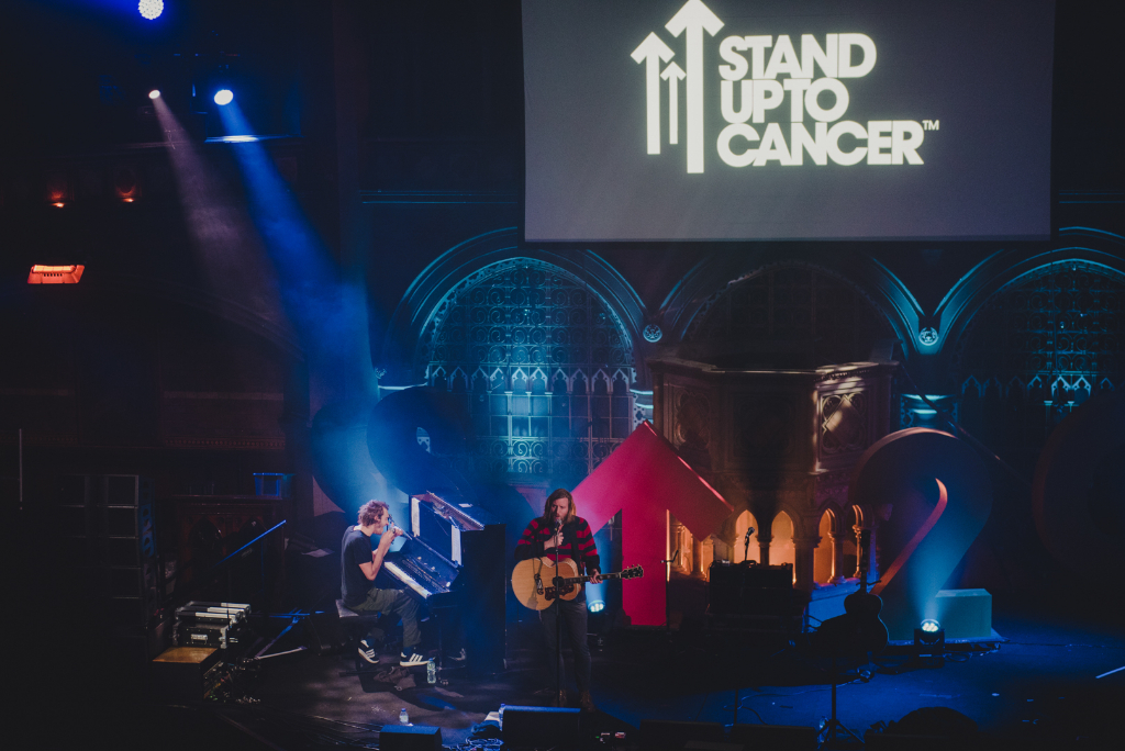 Compered by a voluble Chris Stark (BBC Radio 1), the evening ebbed and flowed smoothly from playful music to serious matters and back. Between acts, Stark deftly summarised Stand Up’s aims, delivering a convincing sermon to the congregation seated in the pews. Throughout, videos shown on a large screen above the stage explored the urgency of the charity’s campaign by examining the harrowing journeys facing those affected by cancer.