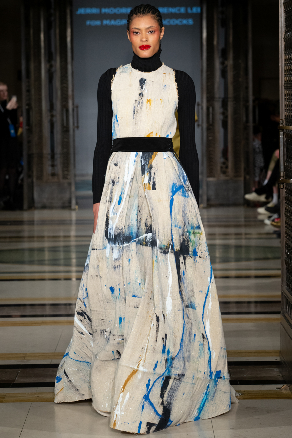 The nation’s only non-profit design house displayed two zero-waste luxury collections for A/W19, with René Garza showcasing a deconstruction of the luxurious tuxedo, and Moore + Clarence challenging society’s views on luxury.