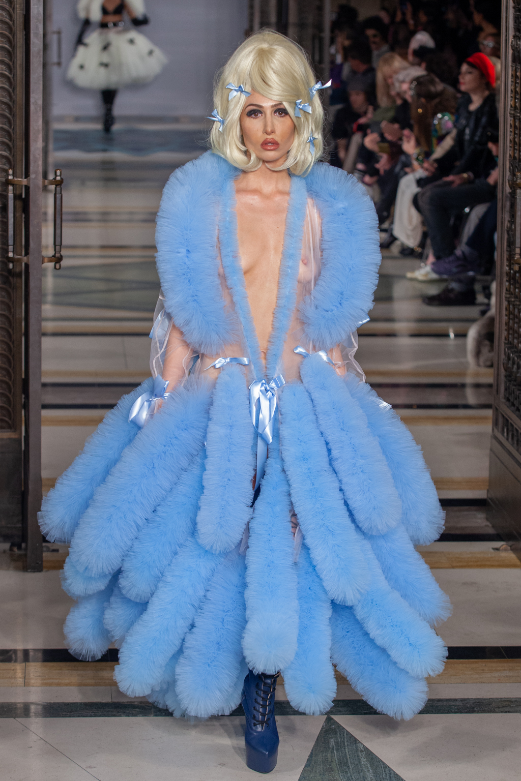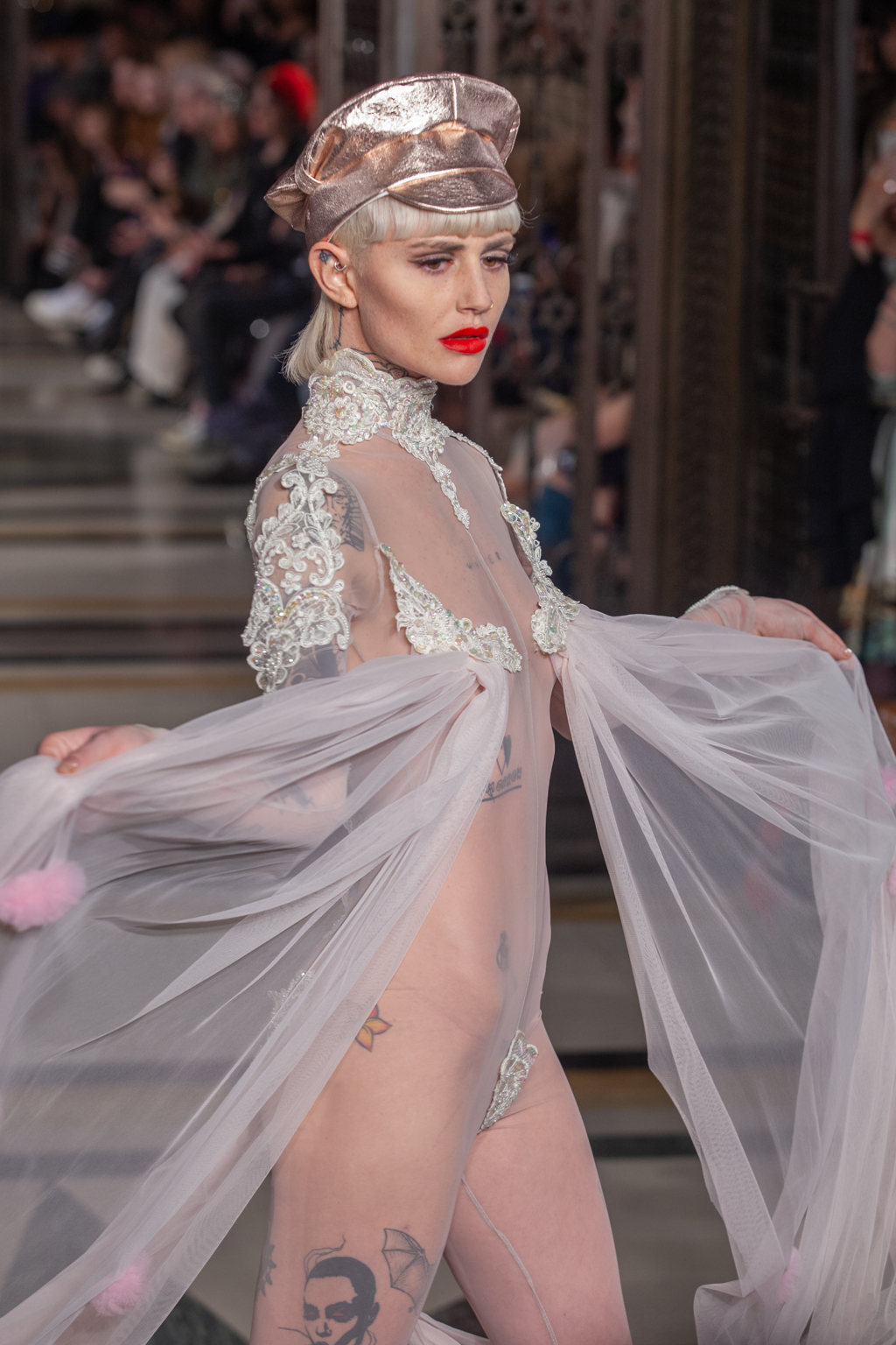 A crowded Freemasons’ Hall gave the must outstanding welcome this Sunday evening to the remarkable Pam Hogg and her collection Venus in Phurr.