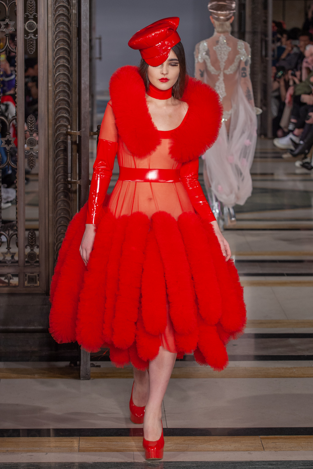 The collection made a commentary on the distinction between reciprocity versus domination through the union of red and gold, while the purest of whites stamped an angelic tyranny on the catwalk, all of these looks displaying severity and sexiness at maximum splendour.