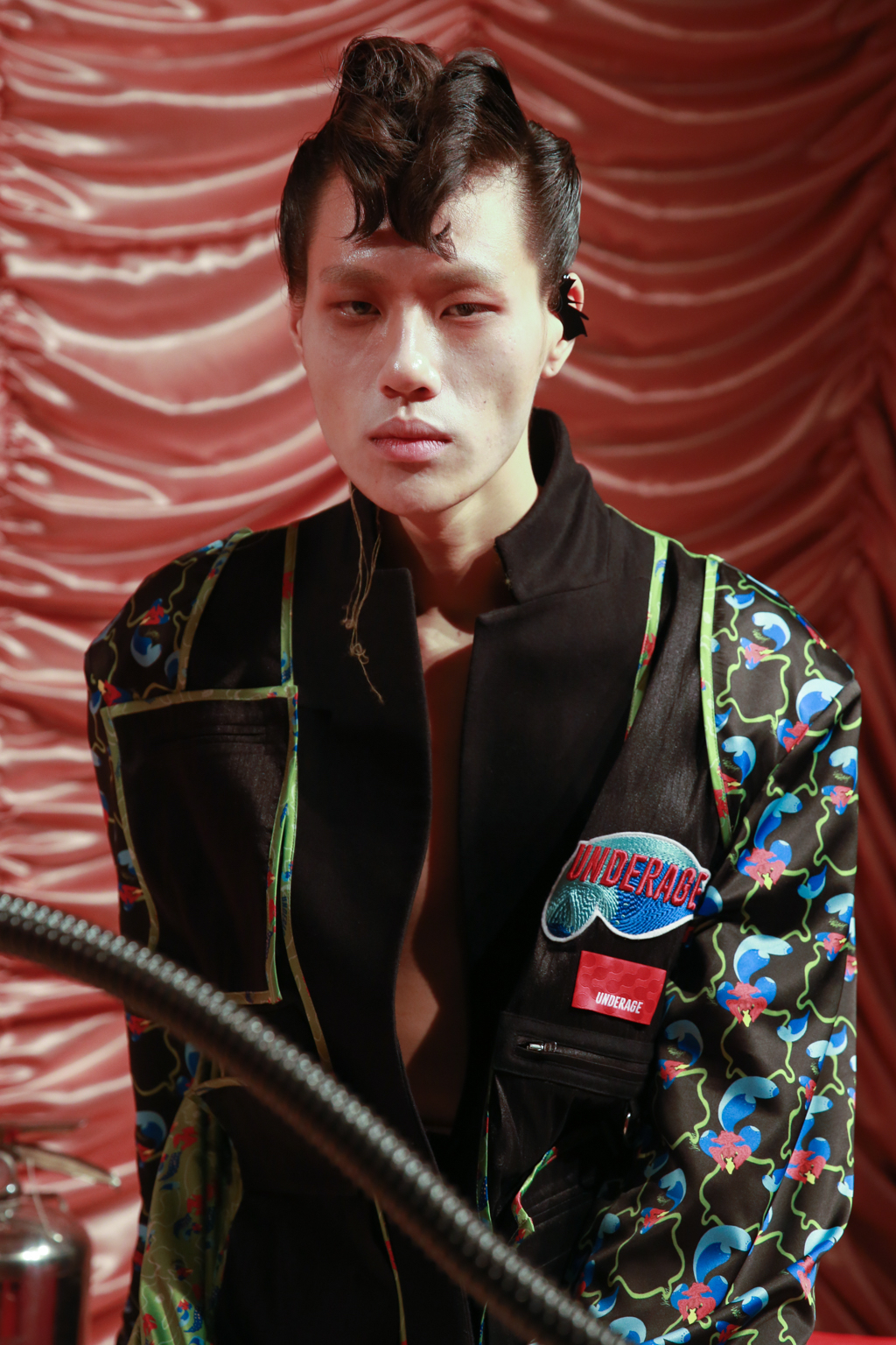Characterised by mixed shapes and dark nuances, UNDERAGE’s collection for autumn/winter 2019 reflects the juxtaposition of strange and familiar traits in a similar manner to The Rocky Horror Picture Show. The movie, which is the main inspiration of the brand’s mastermind Ying Shen, continues to have as big an impact on the young people of today as it had on the audiences of the 70s – though it leaves an impression of a different kind. The Beijing-born designer explores cutting-edge and advanced forms against more conventional layouts, focusing especially on the creative take of generation Z.