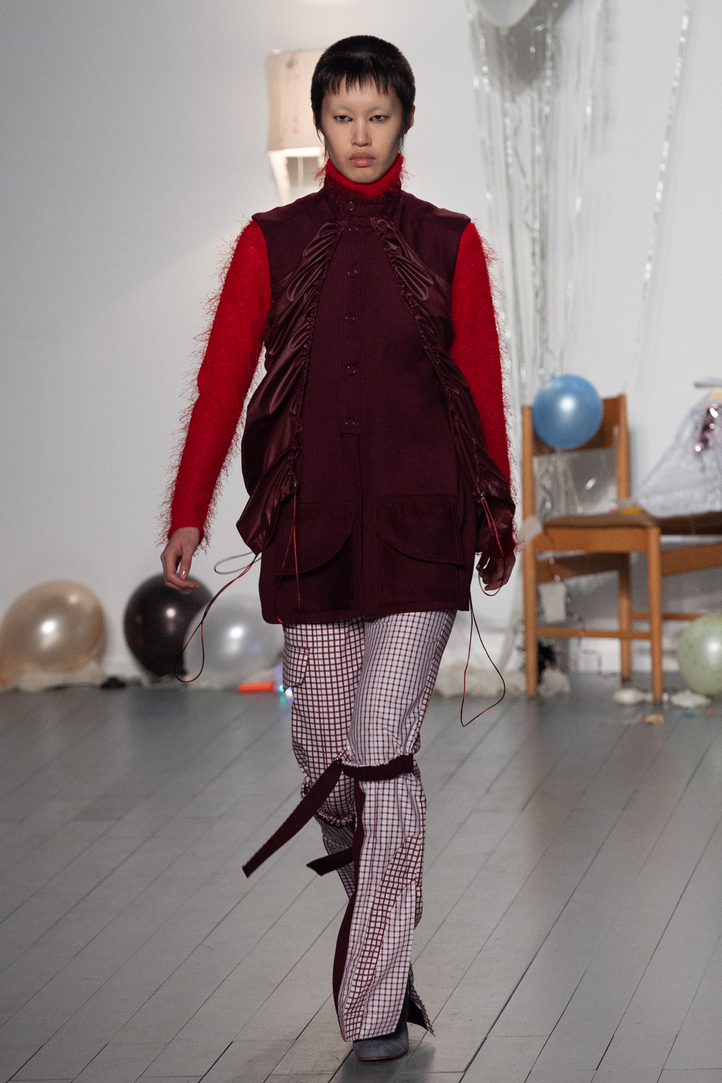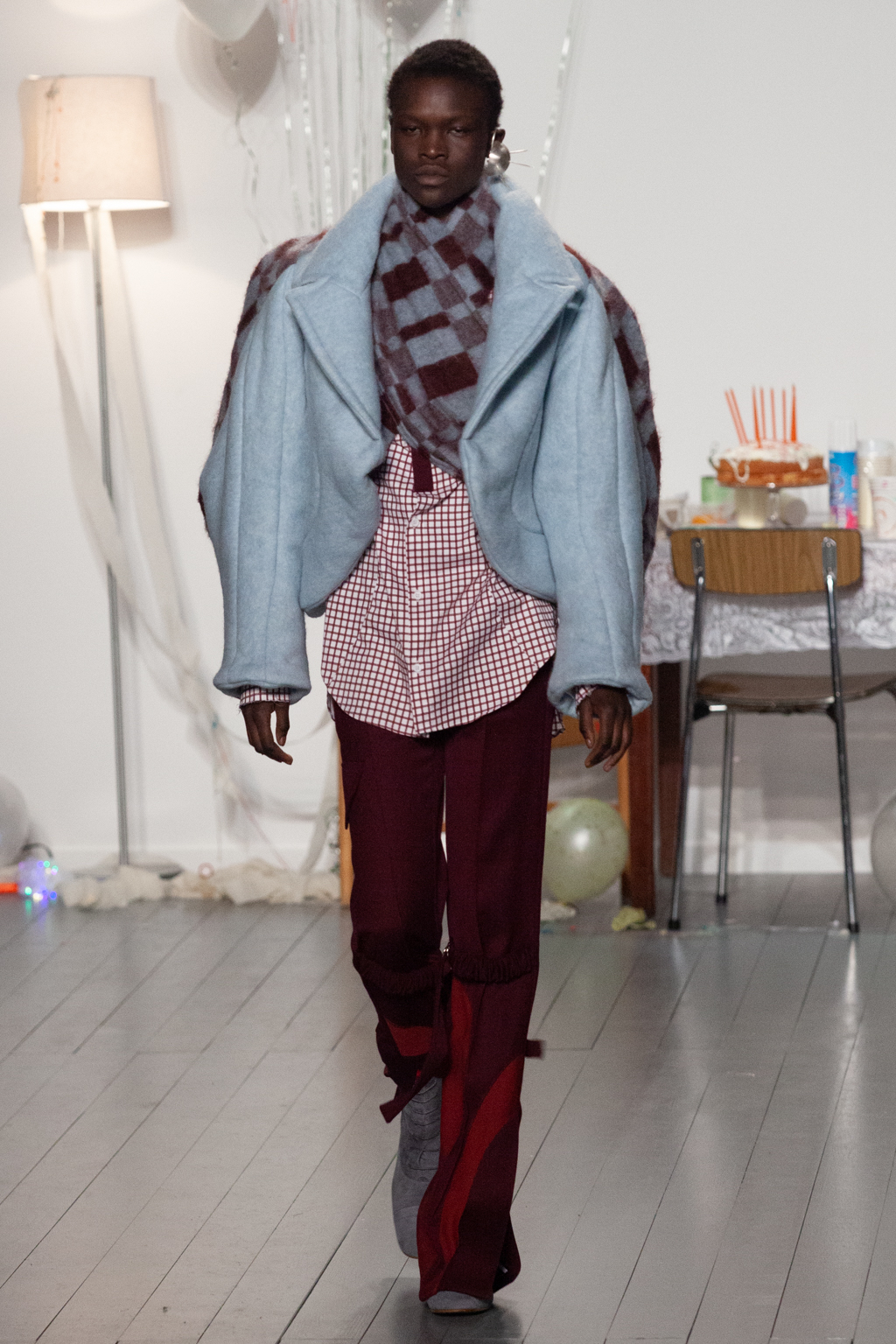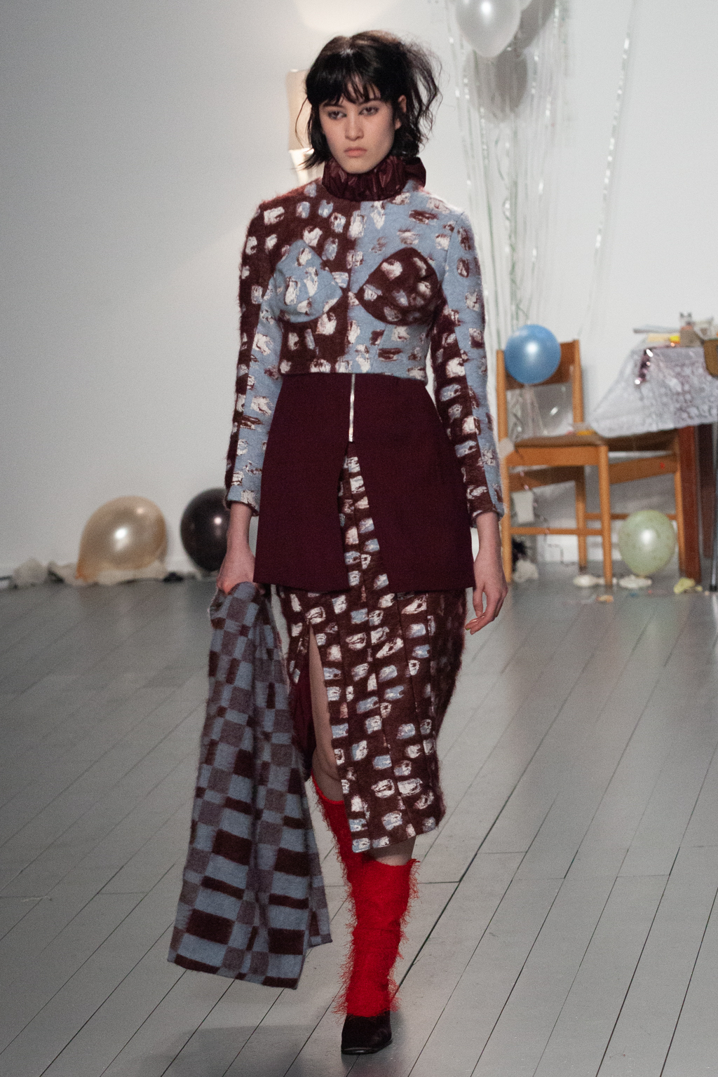 A family birthday party set the scene for Richard Malone’s autumn/winter 2019 show, which exhibited a dressing up wardrobe intended to span generations.